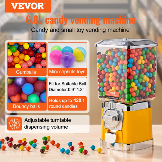 VEVOR 17"H Gumball Machine Vending Coin Bank Vintage Candy Dispenser PC Yellow