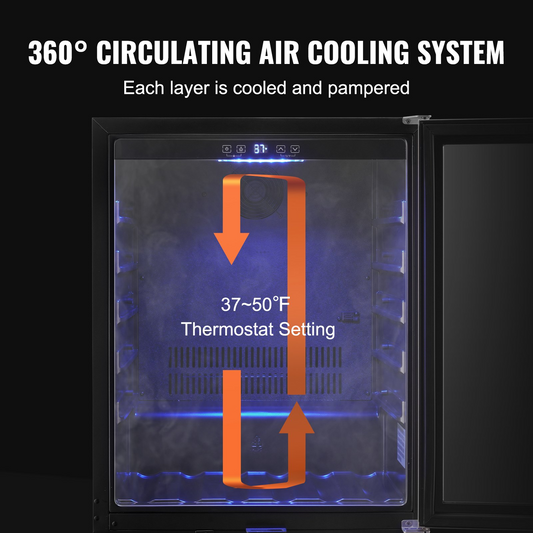 VEVOR 24" Beverage Refrigerator, 154 Cans Under Counter Built-in or Freestanding Beer Cooler Fridge, Blue LED Light, Child Lock, Adjustable Shelves, ETL