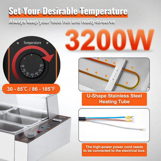 VEVOR Commercial Electric Food Warmer Countertop Buffet 19Qt 1200W Bain Marie