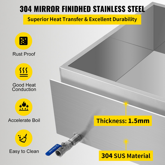 VEVOR Maple Syrup Evaporator Pan 36x24x18.5 Inch Stainless Steel Maple Syrup Boiling Pan with Valve and Thermometer and Divided Pan and Feed Pan