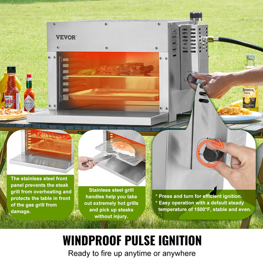 VEVOR Propane Steak Grill 1500°F Portable Infrared Broiler for Outdoor Barbecue