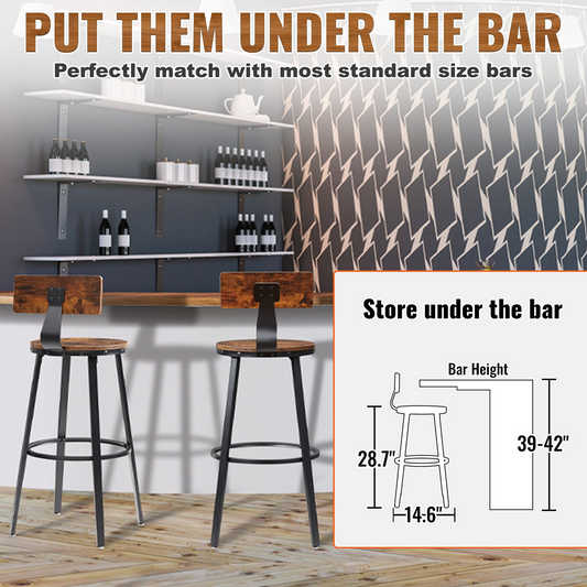 VEVOR Rustic Bar Stools Counter Height Round Bar Chairs with Backrest 29" 2 Set