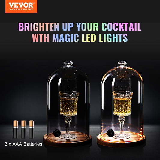 VEVOR Smoking Cloche, 6.9 inch Glass Dome Cover with Wooden Base, Smoker Gun Smoke Infuser Accessory for Plates, Bowls, and Glasses, Specialized Cloche Dome Cover Lid for Cocktails Drinks Foods, Clear