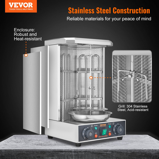 VEVOR Shawarma Grill Machine, 13 lbs Capacity, Chicken Shawarma Cooker Machine with 2 Burners, Electric Vertical Broiler Gyro Rotisserie Oven Doner Kebab Machine, for Home Restaurant Kitchen Parties
