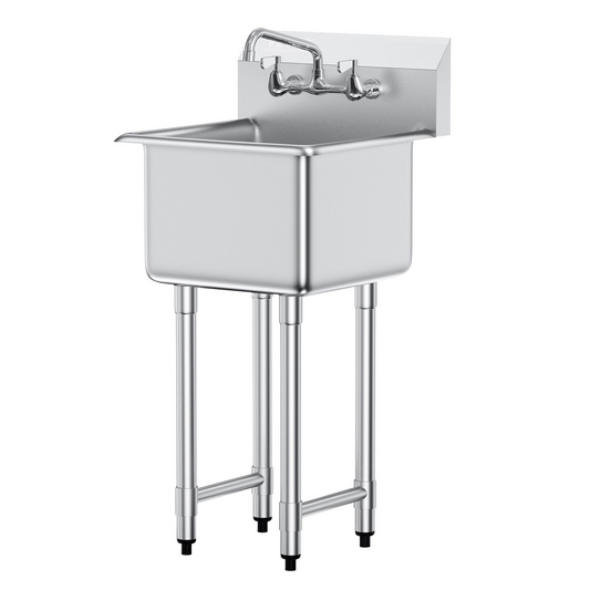 VEVOR Stainless Steel Prep & Utility Sink, 1 Compartment Free Standing Small Sink Include Faucet & legs, 18"x41" Commercial Single Bowl Sinks for Garage, Restaurant, Kitchen, Laundry, NSF Certified