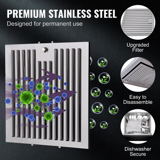 VEVOR Under Cabinet Range Hood, Dual Motors Ductless Kitchen Stove Vent, Stainless Steel Permanent Filter with 3-Speed Exhaust Fan, 2 Baffle Filters, LED Lights, Touch Control Panel, Silver (30 inch)