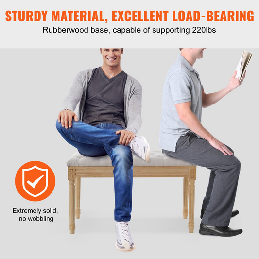 VEVOR Upholstered Bench, 16"W Ottoman Bench, End of Bed Bench with Foam Padded Cushion and Rubberwood Legs, Tufted Footrest Stool Entryway Bench for Dining Room, Living Room, Bedroom, Hallway, Beige