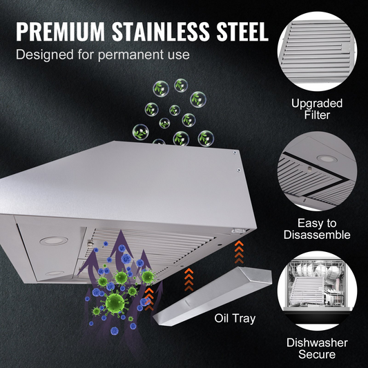 VEVOR Wall Mount Range Hood, Ductless Chimney-Style Kitchen Stove Vent, Stainless Steel Permanent Filter with 3-Speed Exhaust Fan, 2 Baffle Filters, LED Lights, Push Button, Silver (30 inch)