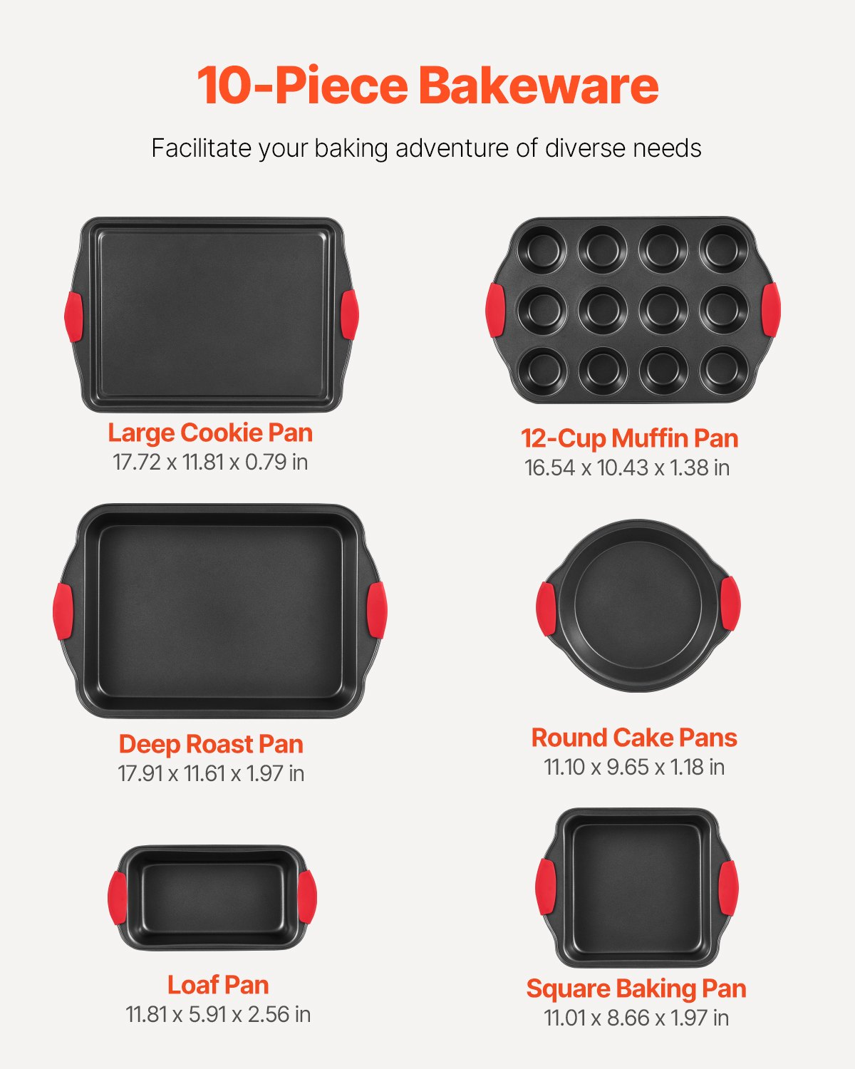 Baking Pan Set 6-Piece Nonstick Carbon Steel Bakeware Set with Silicone Handle