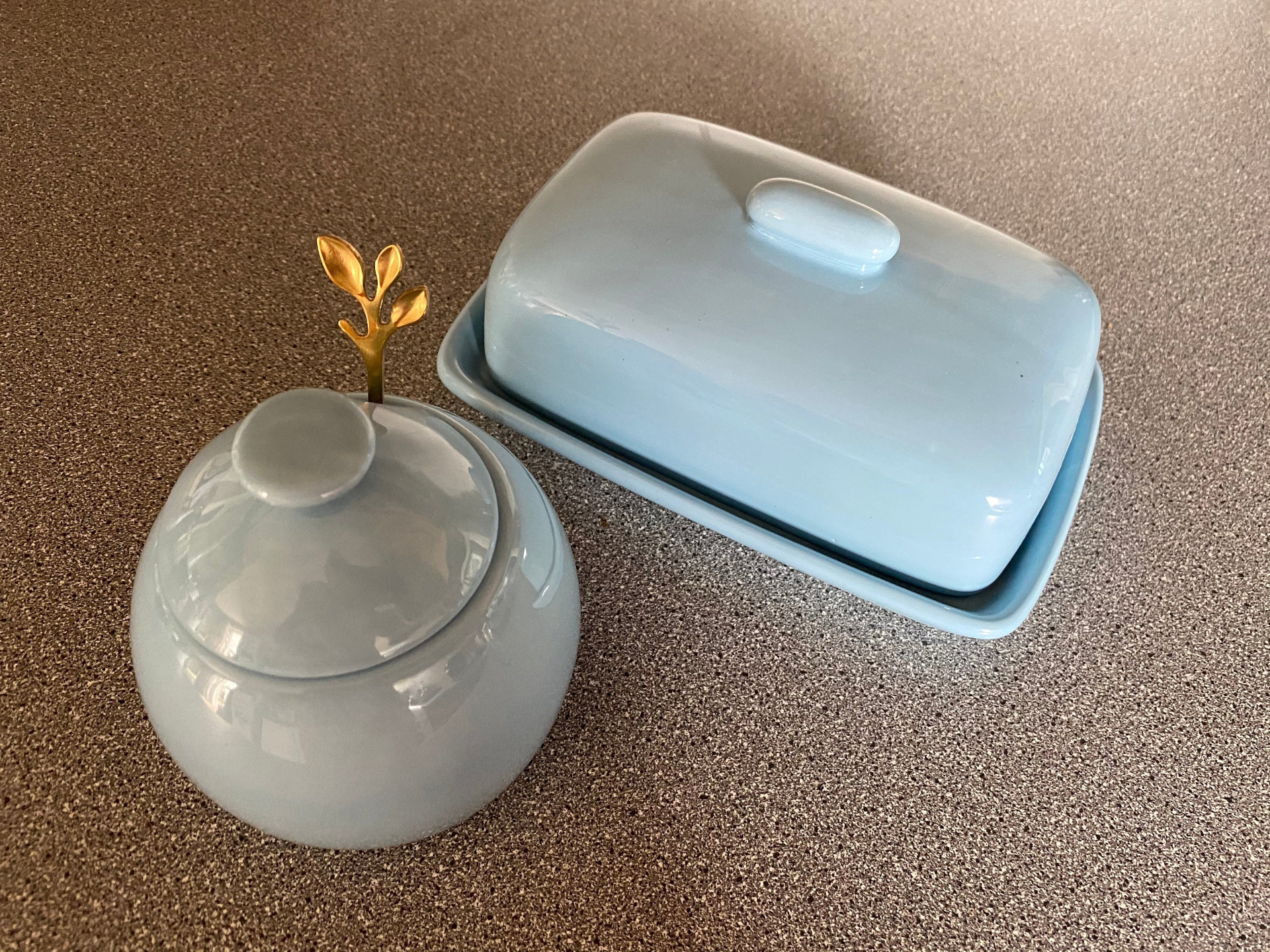 Butter Dish and Sugar Bowl Set - Powder Blue Glaze