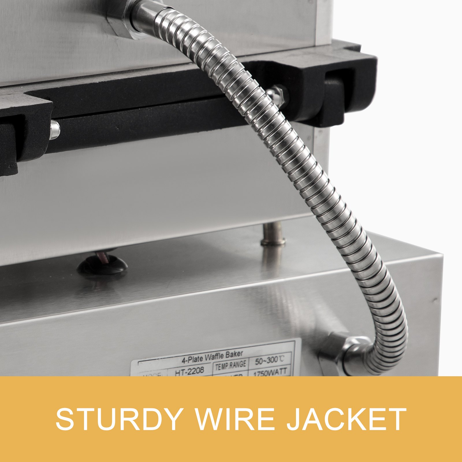 Mould Material: Cast Aluminum,Body Material: Stainless Steel,Gross Weight: 24.3 lbs (11 kg),Timer: 0~5 mins,Mould Coating: Teflon,Temp.: 50~300℃,Package Dimensions (L x W x H): 21.3" x 13.8" x 10.2" (54 x 35 x 26 cm),Power: 1750W