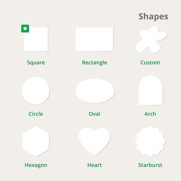 Standard sticker shapes won't call attention if your customers have more dynamic or louder personalities. Design a statement or entirely new concept to their liking based on die-cut shape options like the hexagon, heart, or starburst.?