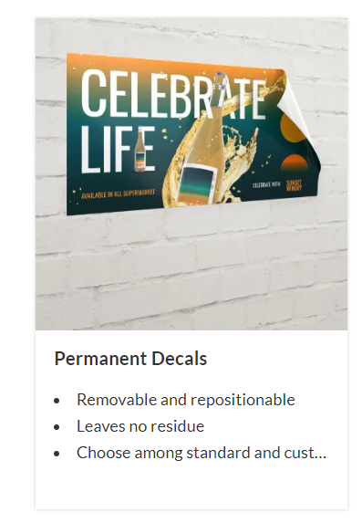 Give blank spaces a dash of color and make an impact that lasts. Custom printed decals are extremely durable marketing tools that last for years, giving you more bang for your buck. Whether you want your brand or message to be seen from the road, on storefront windows, or inside establishments, custom decals get the job done.
