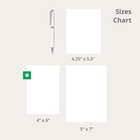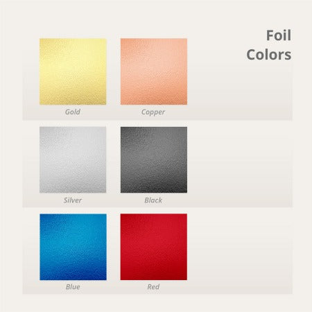 Foil flyers can be ordered in sizes from 4" x 6" (the standard size for personal printed photos), to 5" x 7" (about the size of a large travel postcard). You can choose between a classic 14 pt. uncoated cardstock for better writability, or a premium water-resistant 16 pt. silk laminated stock for an upscale look and feel.