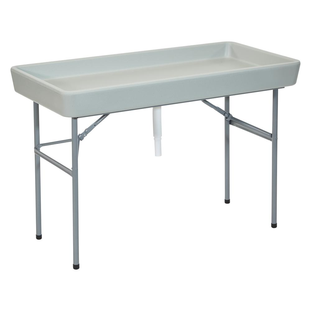 Keep beer, wine, and soda cans ice cold while presenting them in a convenient and attractive way with our WorkSmart, Folding Beverage Ice Cooler Table. The perfect portable party bar for catering, weddings, hosting a party, an event, or tailgating before the big game. Simply add ice to the beverage trough, keeping drinks and cold-foods cool, fresh and within easy reach. Ideal for indoor and outdoor use thanks to our durable blow-mold construction, resistant to chipping, peeling, cracking, or rusting. Heavy-duty steel tube powder-coated legs safety lock into place for stability and worry-free hospitality.Easily drain melted ice through the bottom drain-hose avoiding water accumulation on drink cans. Once your event is done, simply empty, dry, and fold-and-stow for transportation and storage.