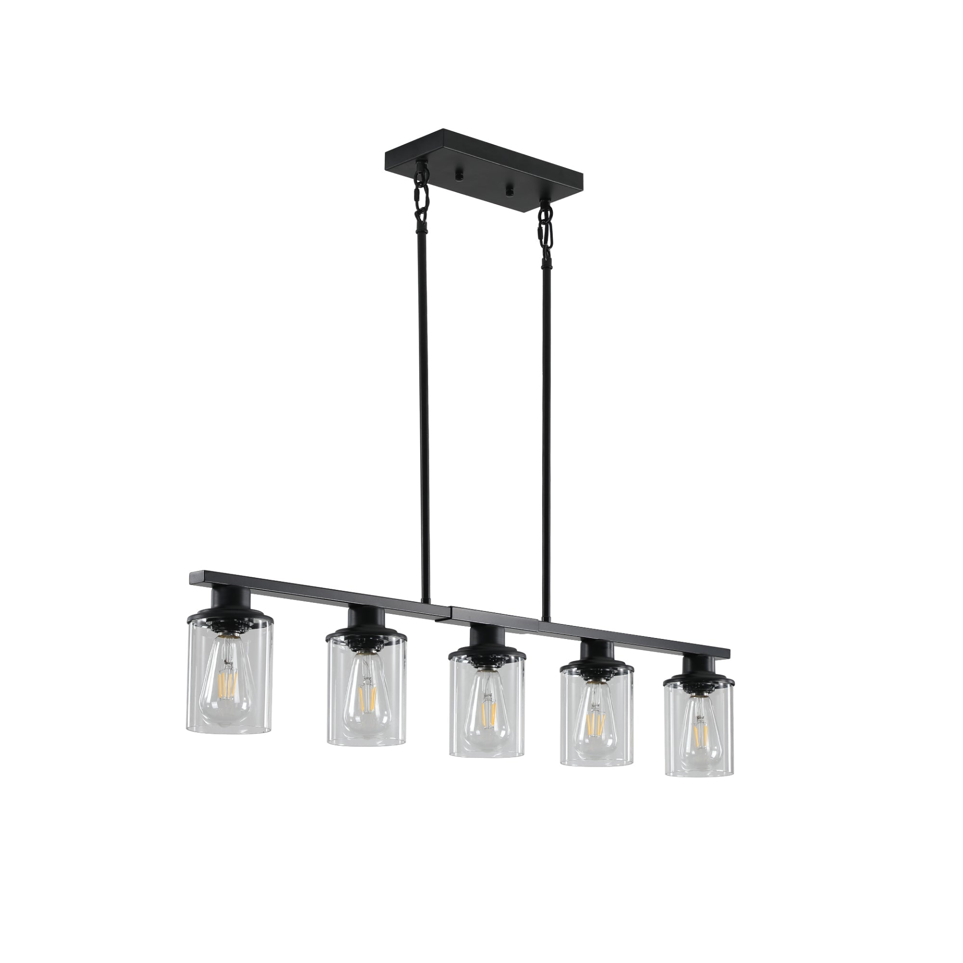 Modern Industrial 5-Light Chandelier with Clear Glass Shades, Matte Black Metal Frame Hanging Ceiling Light Fixture for Dining Room, Kitchen Island, Living Room (No Bulbs)