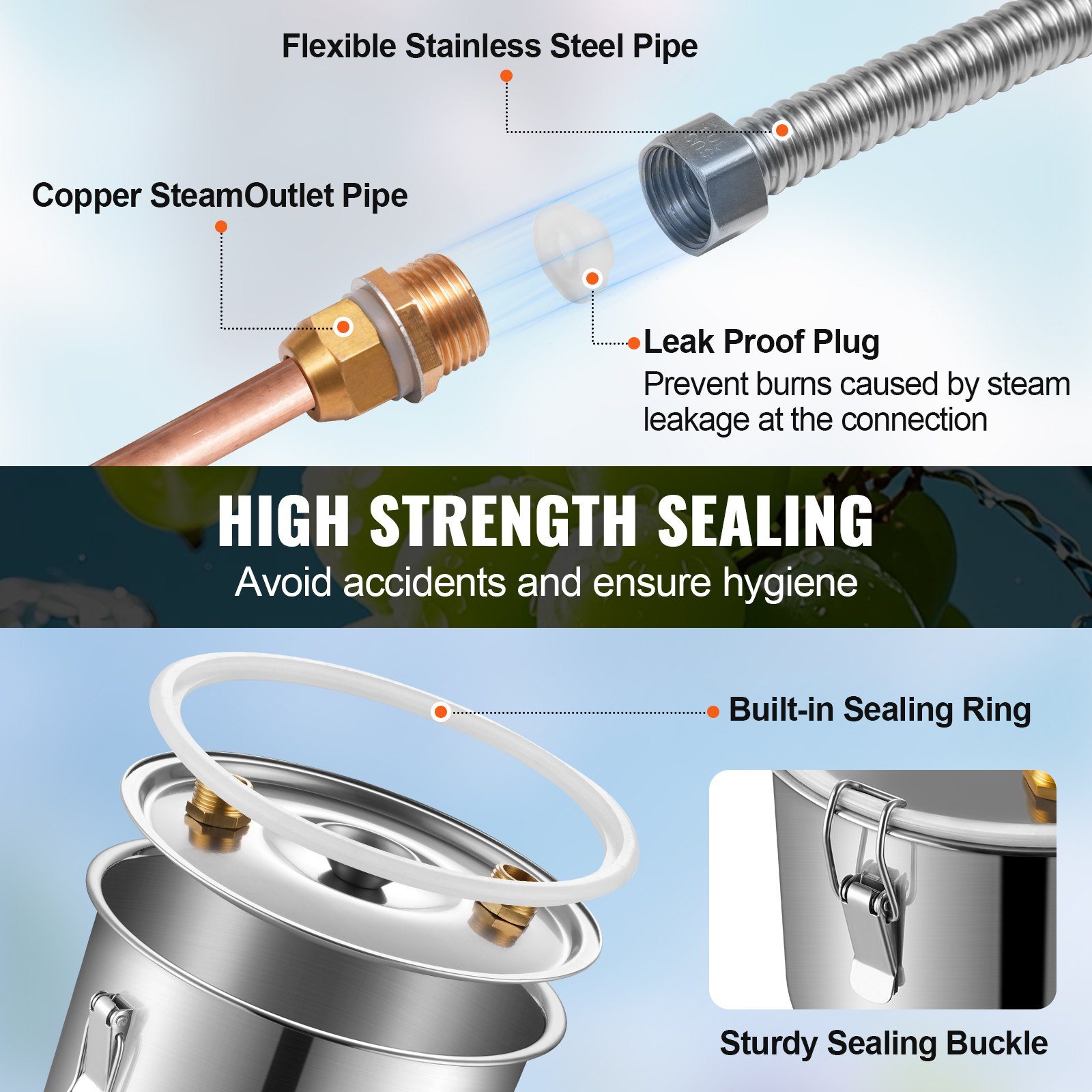 Fermentation Barrel Capacity: 5 Gal / 19 L,Condenser Tube Material: Copper,Water Pump Power: 8 W,Item Model Number: DTDB-20L-U,Product Weight: 9.0 lbs / 4.1 kg,Dual Display Thermometer Range: 50°F~400°F / 0℃~200℃,Main Material: SUS201 Stainless Steel