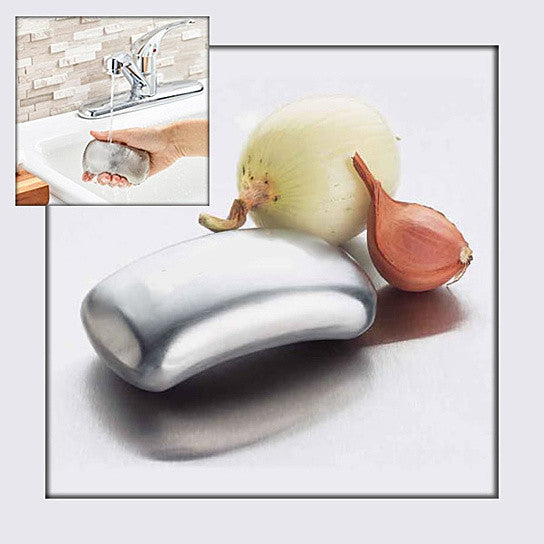 Odor be gone is a scientifically proven special Stainless Steel bar shape like hand soap. It absorbs the odor and cleans your hand and make it odor free. Simply just wash your hand while rubbing to the bar and in few minutes the odor is gone.