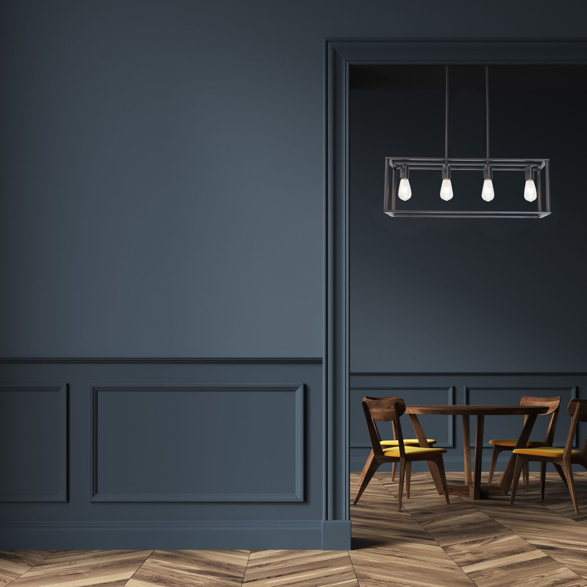 Pendant Lighting 4 Light Industrial Vintage Open Frame Rectangle Chandeliers Modern Black Linear Cage Ceiling Light Fixture