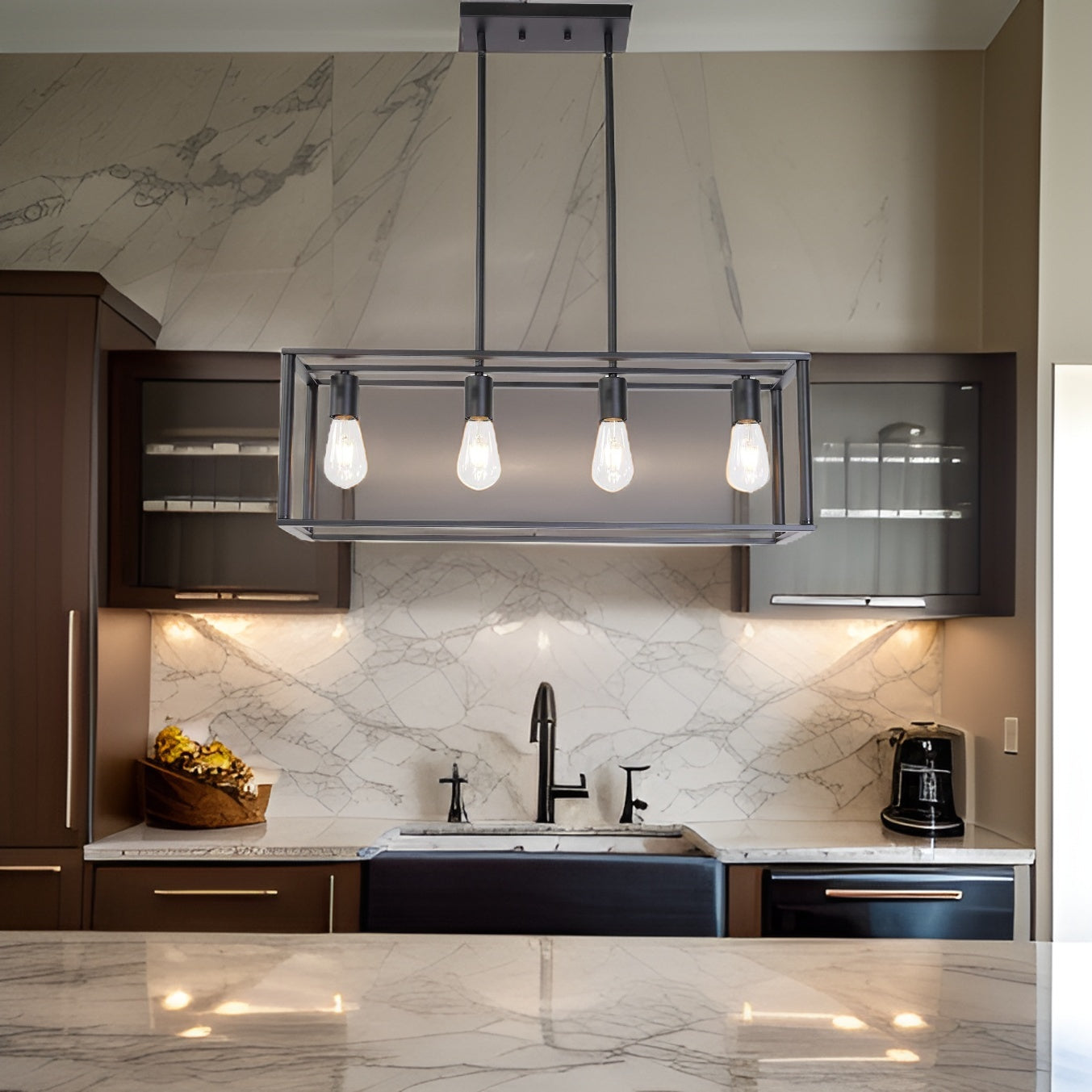 - Rectangular Chandelier with 4 Lights: This contemporary lighting fixture, suitable for the kitchen island or dining room, boasts adjustable stems for hanging. The captivating open bulb design ensures that this farmhouse chandelier becomes a captivating focal point in any residence.