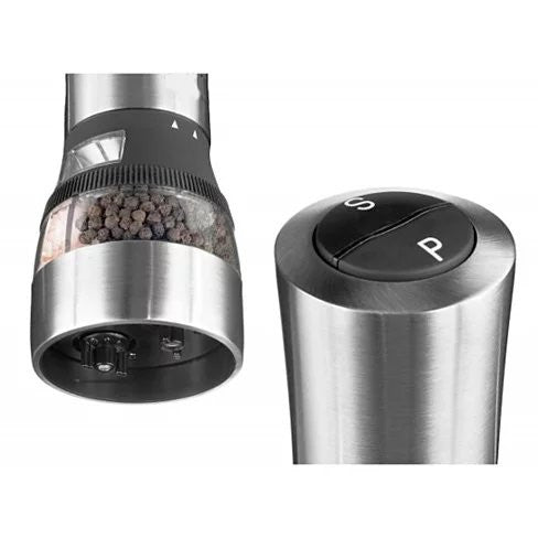 - Electric dual head Grinder, shows big S AND P letters on top, for Salt and Pepper.
