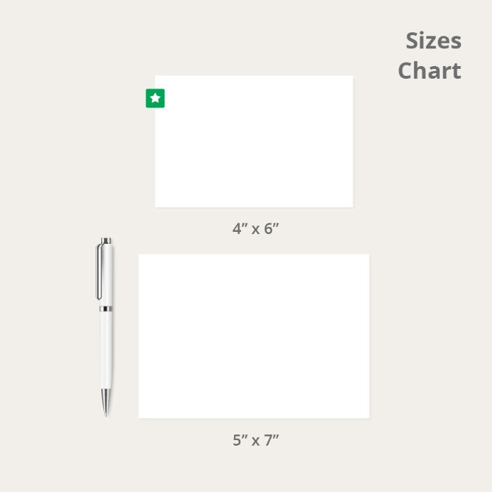 All personalized postcards comply with the sizes required for First-Class mailing orders. Choose between the standard 4" x 6" or the larger 5" x 7" postcard sizes. Upload a ready-made design or use our online tool to create a new one. Find out how our spot UV coating can make a difference today.