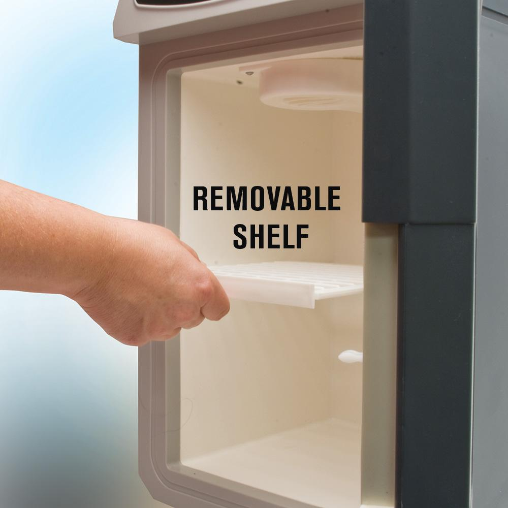 With this SnackMaster deluxe cooler and warmer you can keep your favorite food and drinks cold or keep preheated foods warm while on-the-road. Simply plug into your truck 12-volt socket and go. Choose the setting for cooling food or choose the setting for warming food. The clear plexiglass door allows you to see what you need before opening. The interior light illuminates for better visibility inside a truck cab or low-visibility setting. You can push the light switch on or off. The seat belt slots allow you to keep the unit secure while driving. This 12V electric refrigerator can be used vertically or horizontally and makes eating healthy on the road an easier task. Pack your own food for tailgating and camping or for long hauling. The shelf in this family-sized portable cooler and food warmer is removable so you can maximize storage space. This is similar to a refrigerator for truckers with a current draw of 4.2A 51W however this is a thermoelectric cooler. The cooling ability is in relation to surrounding air temperature. It will get up to 30-degrees F below its surrounding air temperature. With a flip of the switch this 12 volt cooler for vehicles functions as a food warmer to heat up precooked foods. This is a great trucking accessory for professional truck drivers as well as a personal plug-in cooler and food warmer for cars. Measures L 11.9 x D 13.8 X H 18.8 with door shut.
