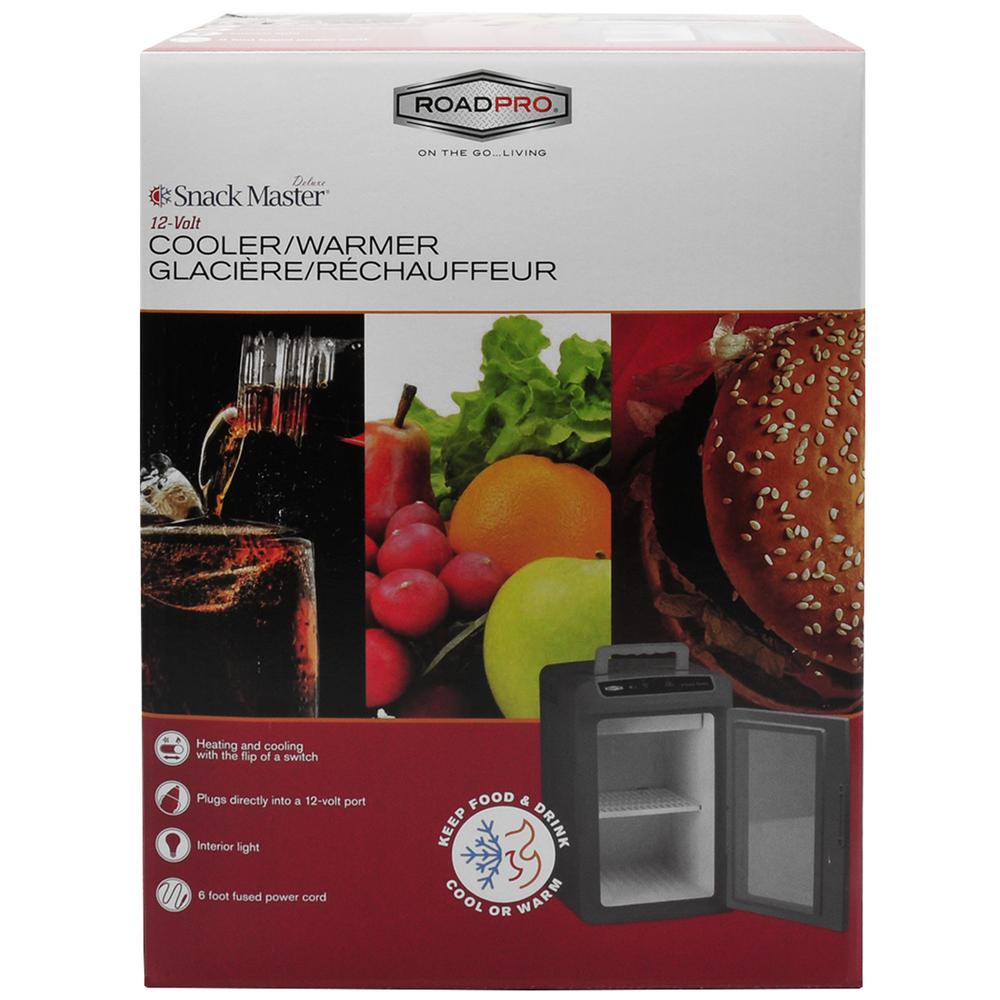 This thermoelectric cooler plugs directly into any 12-Volt power port for use while on the road or off the grid. Cools to 30-35 degrees F below ambient temperature to function as a personal cooler for travel Quickly change between cooler and warmer setting with an easy switch so you get 2 functions in 1 Designed to hold plenty of food and beverages with an 18-quart capacity while remaining compact and able to keep in the truck of a cab or anywhere appliance space is limited Maneuver the SnackMaster to where you want it since it has a fused power cord with a generous length of 6 feet