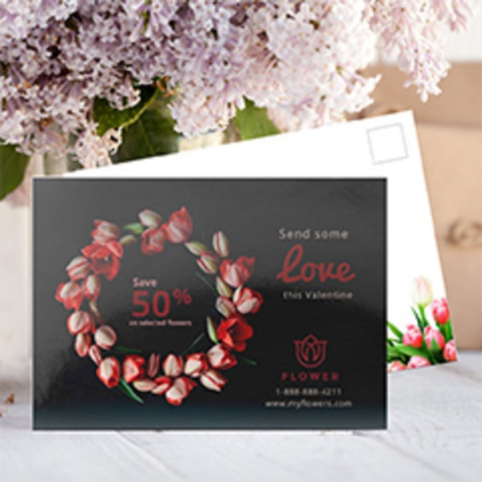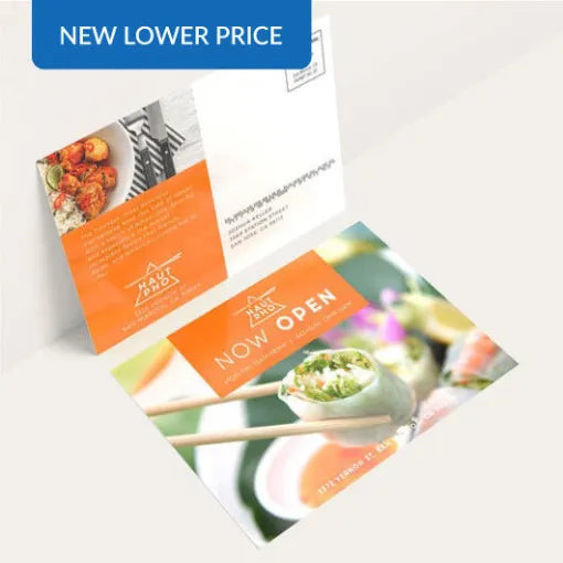 5.5" x 8.5" postcards have more than enough space for an image-heavy or extremely visual design. They’re recommended for postcards announcing a sale or special deal available in store for a limited time.