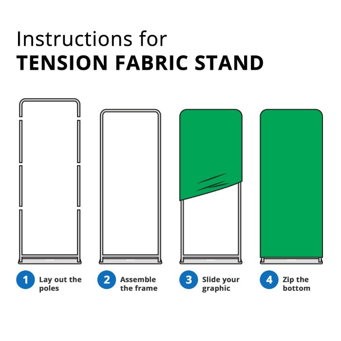 The tension fabric stand has interlocking tube hardware that you can link together. With no screws and pins to use, you can set up your pop-up display in no time flat. Slip the fabric into the frame, pull it taut, and your banner is ready for display.