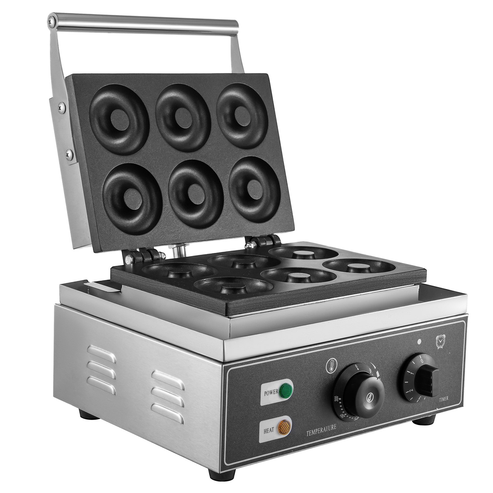 VEVOR 110V Commercial Waffle Donut Machine 6 Holes Double-Sided Heating 50-300℃, Electric Doughnut Maker 1550W, Non-stick Donut MakerTeflon-Coating for Professional Kitchen (Depth:0.55",Dia:2.95")