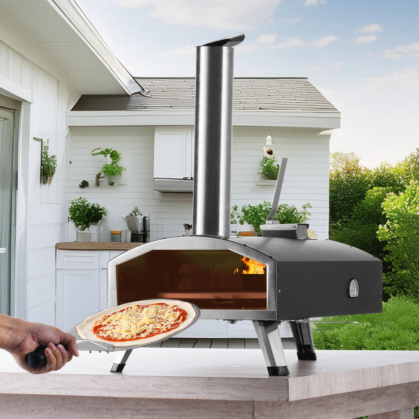 VEVOR 12" Outdoor Pizza Oven Portable Wood Pellet Pizza Oven Camping w/ Rotation