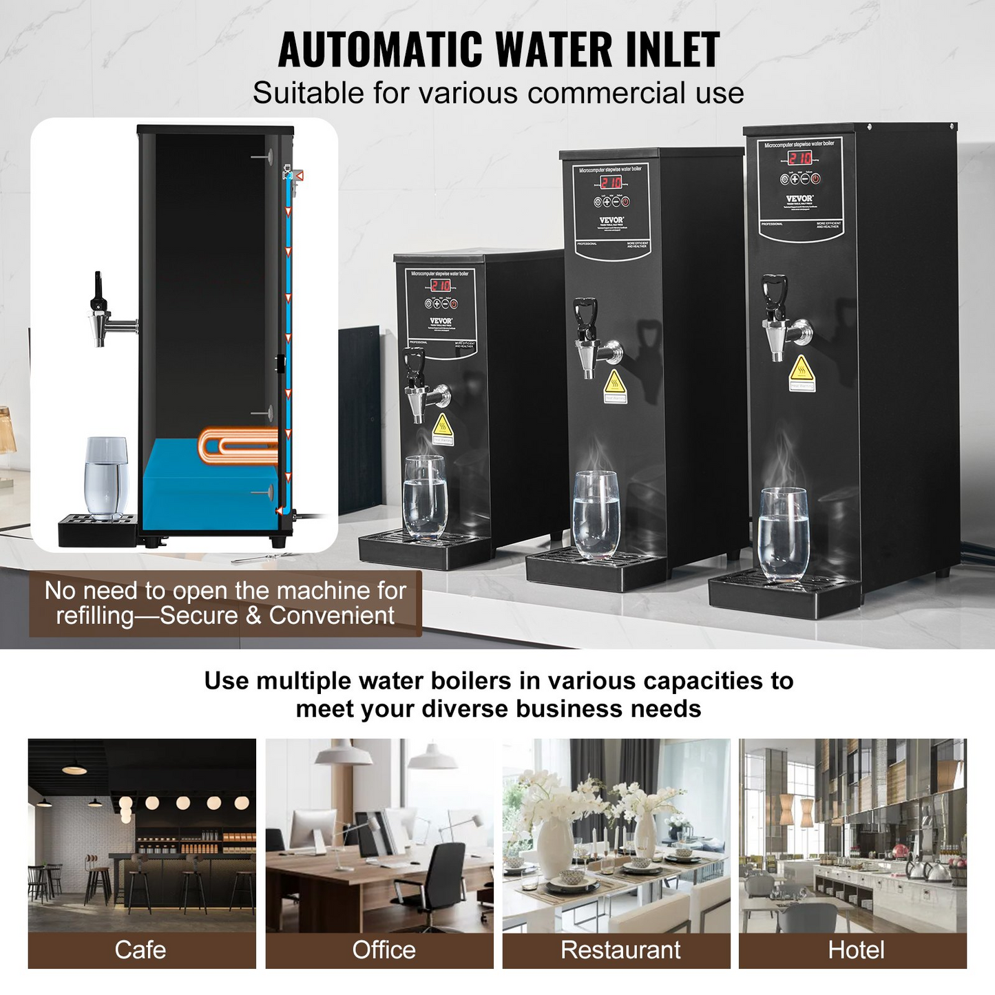 VEVOR 15L Commercial Water Boiler Electric Hot Water Dispenser Stainless Steel
