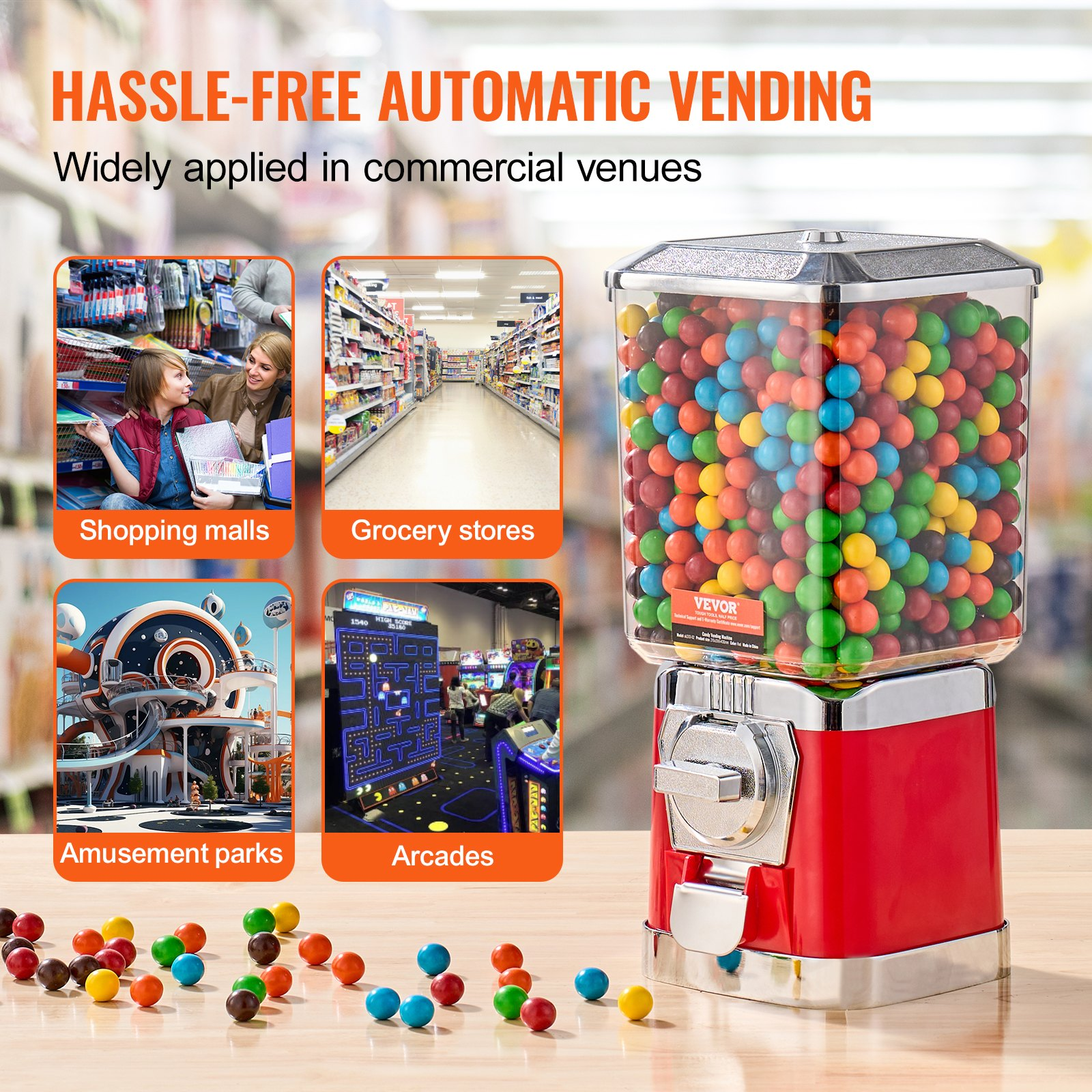 VEVOR 17"H Gumball Machine Vending Coin Bank Vintage Candy Dispenser PC Red