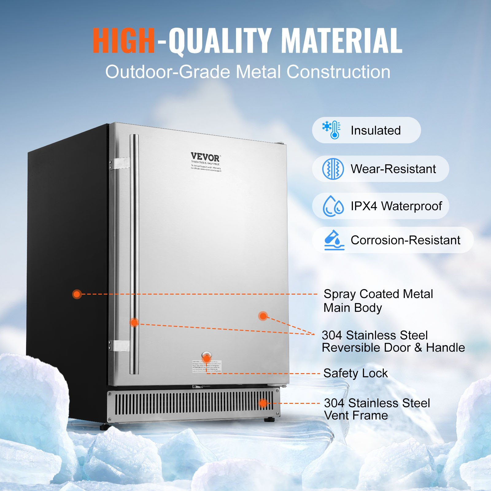 VEVOR 24 inch Indoor/Outdoor Beverage Refrigerator, 185QT Undercounter or Freestanding Beverage Fridge, 175 Cans Built-in Beer Fridge with Metal Plate Body for Residential Home Bar Commercial Use