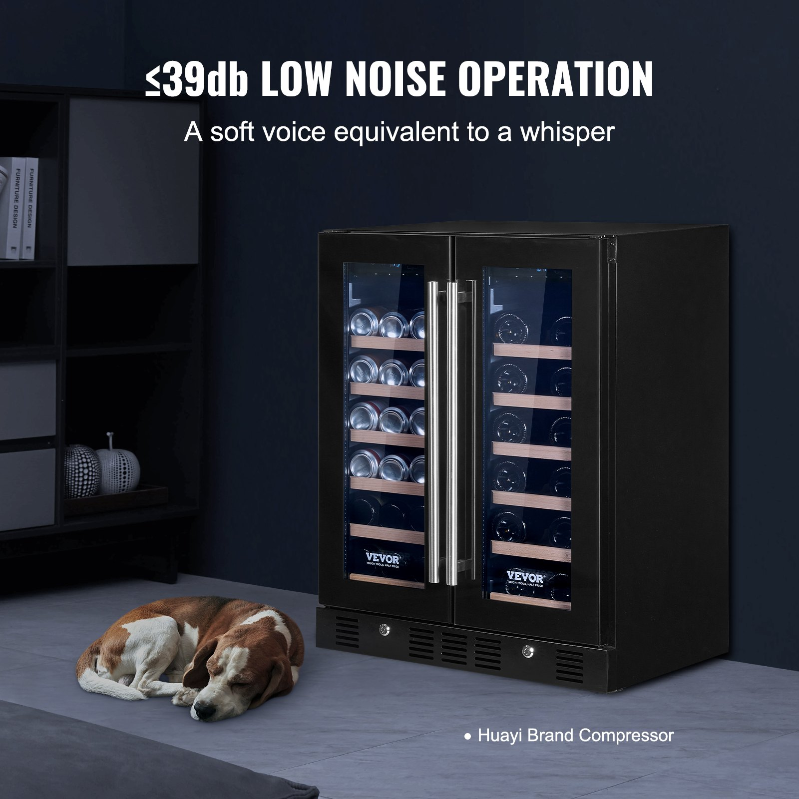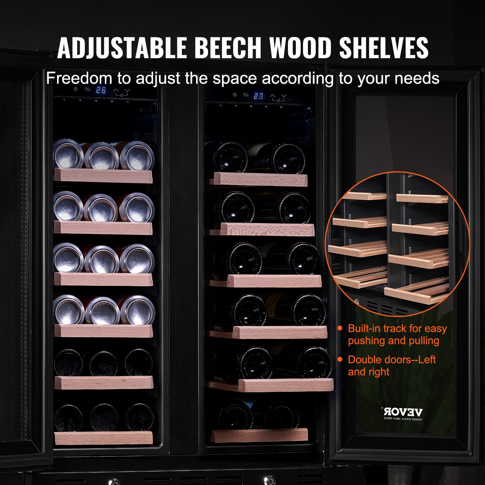 VEVOR 24" Wine and Beverage Refrigerator, 78 Cans and 20 Bottles Dual Zone Tempered Glass Door, Digital Temper Control, Blue LED Light, Child Lock, Built-in or Freestanding, ETL