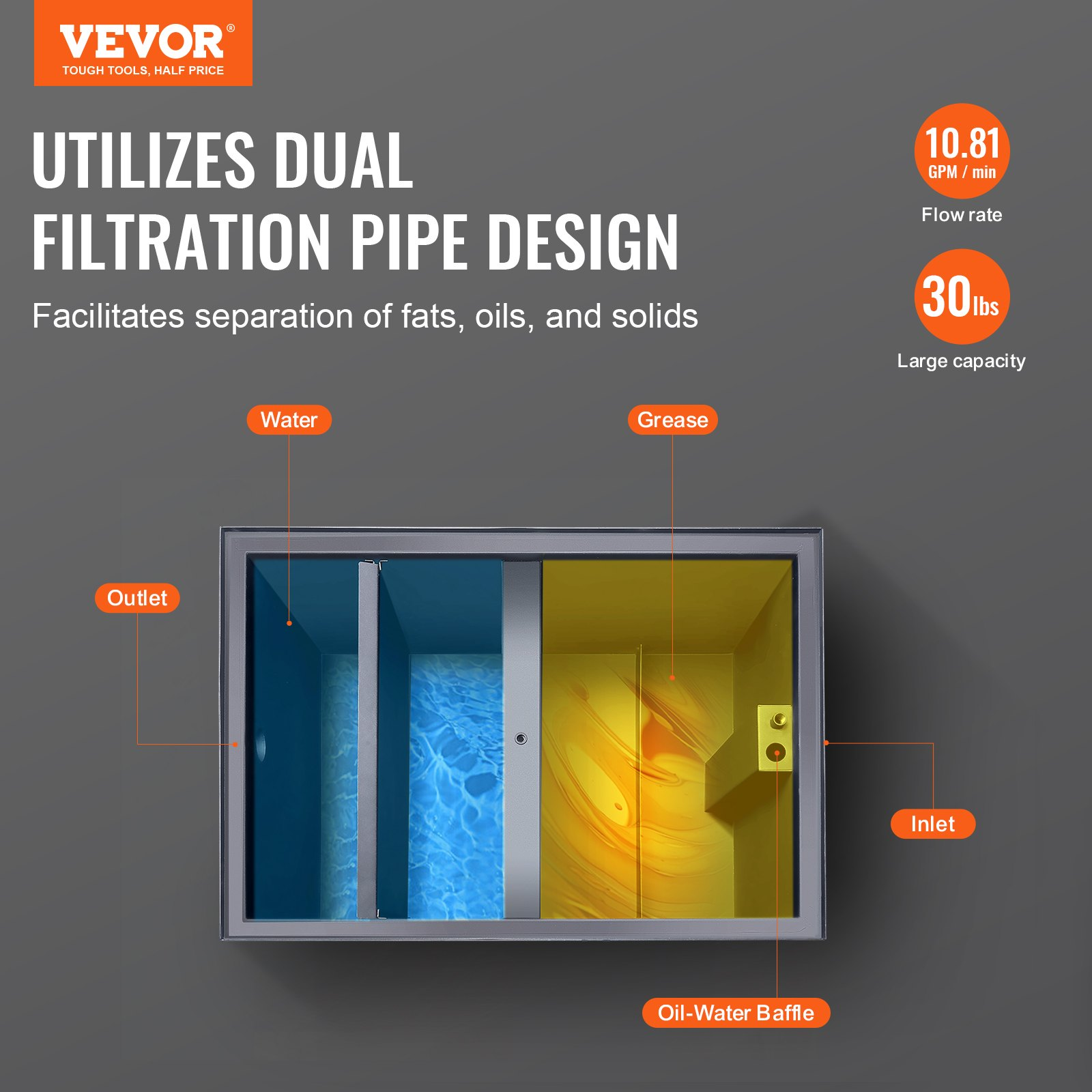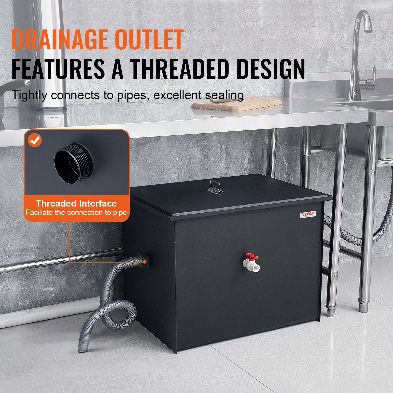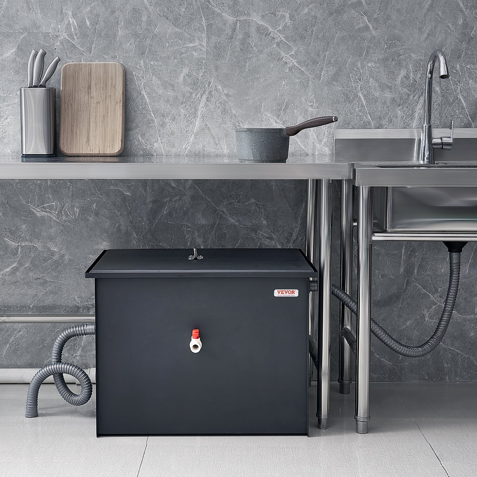 VEVOR 30LBS Commercial Grease Interceptor Trap Carbon Steel Waste Water Filter