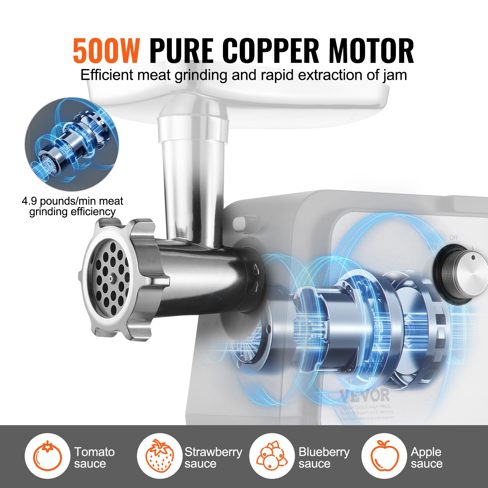 VEVOR 4.9 LBS/Min Electric Tomato Strainer 500W Tomato Sauce Maker Machine Home