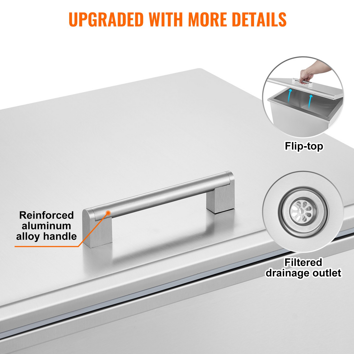 VEVOR 40Quart Drop in Ice Chest Ice Cooler Ice Bin Stainless Steel 20"x16"x14.6"