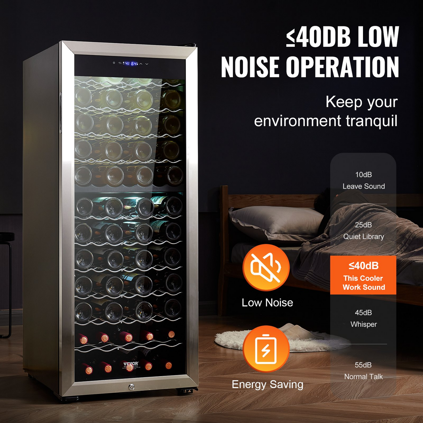 VEVOR 80-Bottle Wine Cooler Dual Zone Freestanding Refrigerator LED Light Lock