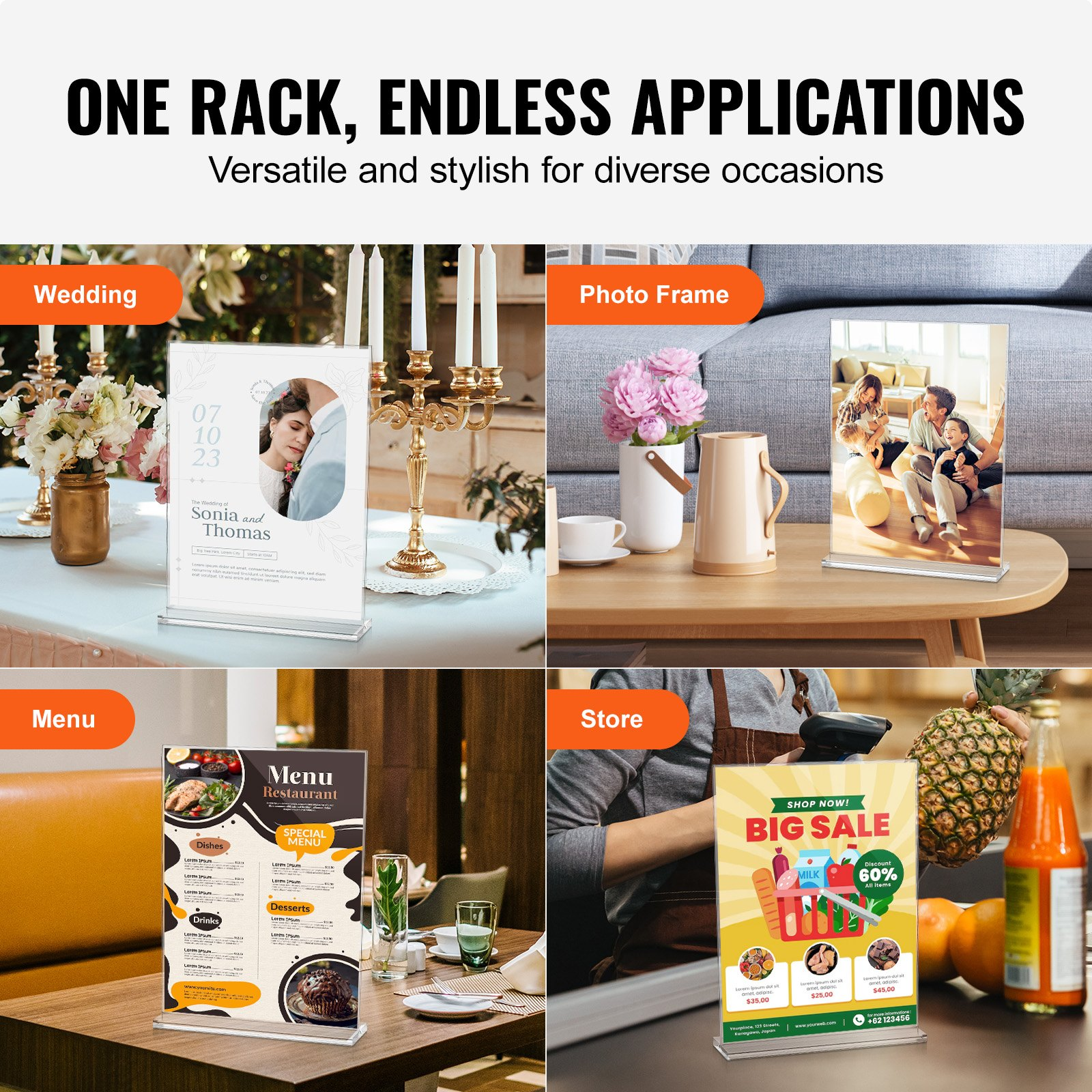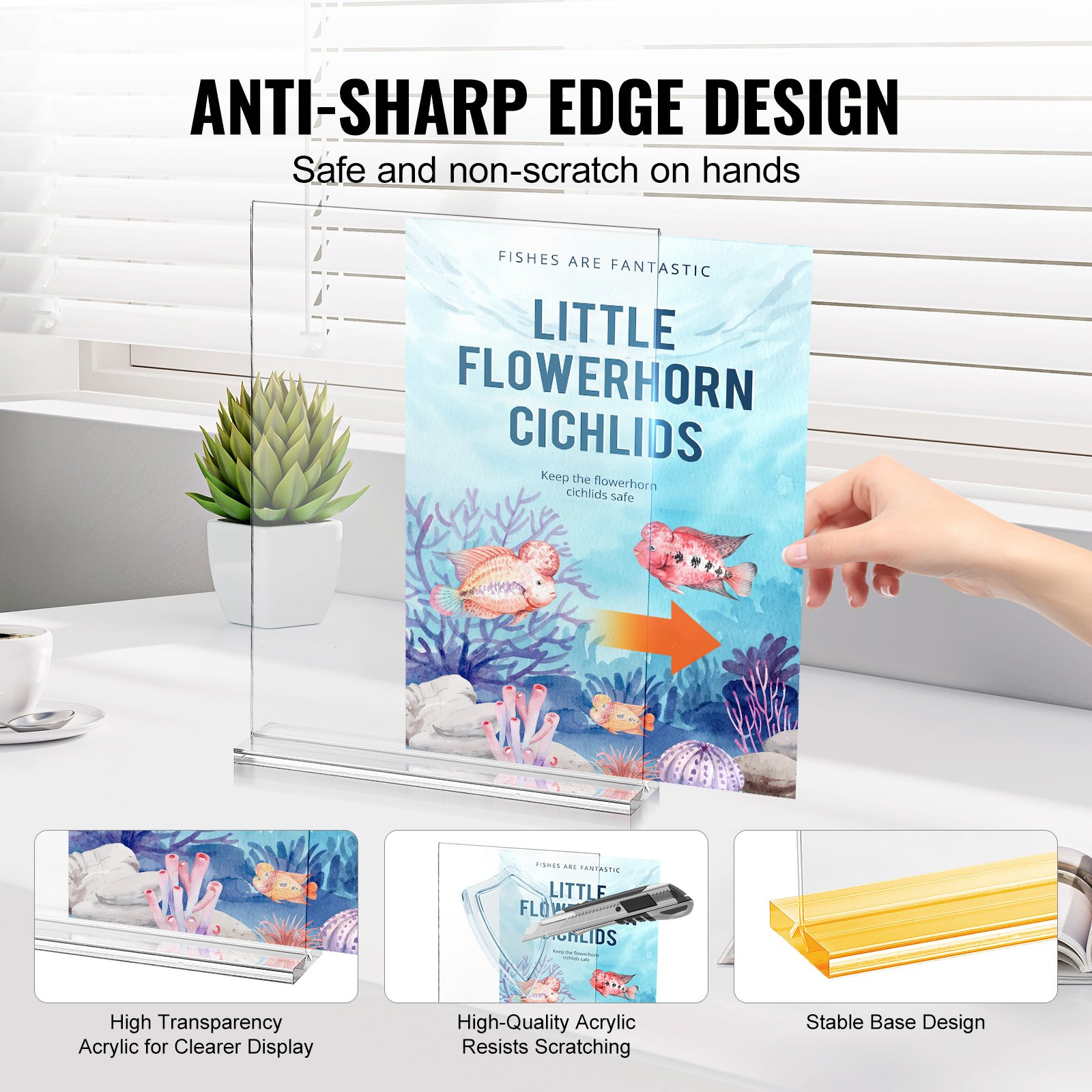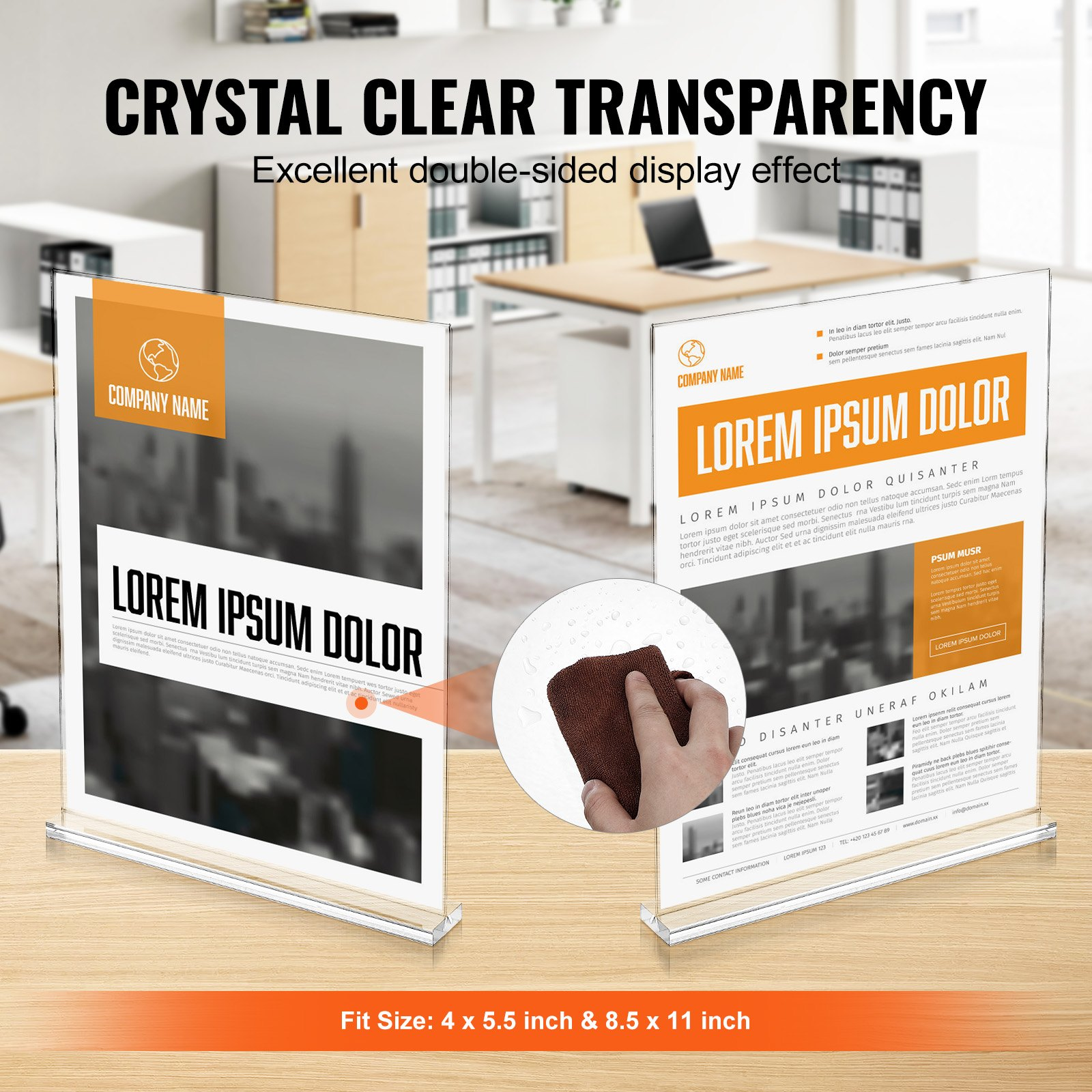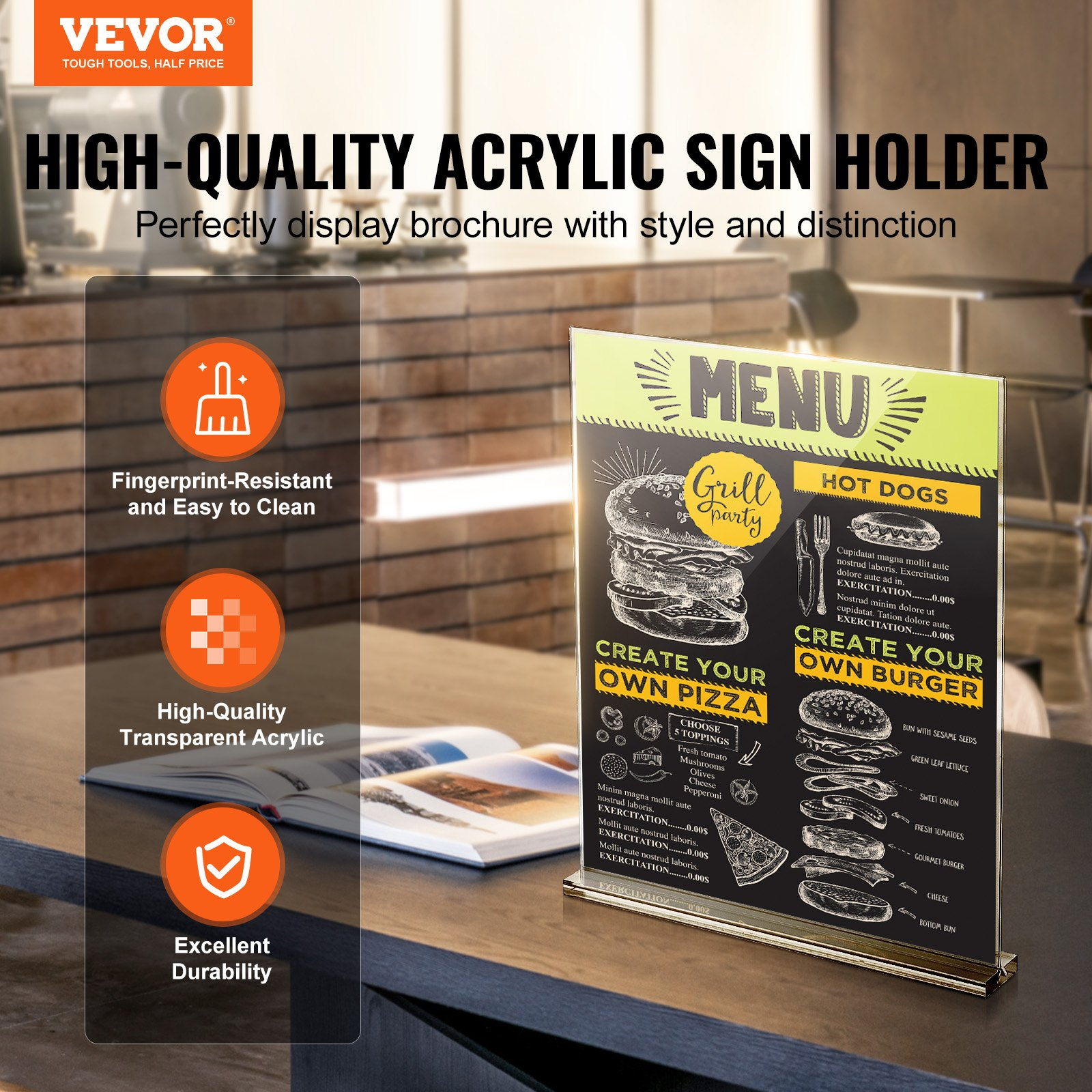 VEVOR Acrylic Sign Holder, 6 Pack 8.5 x 11-inch Brochure Display Holders, T-Shape Double Sided Display Sign Stand, Clear Acrylic Table Menu Photo Paper Holder for Restaurant Office Wedding Bar