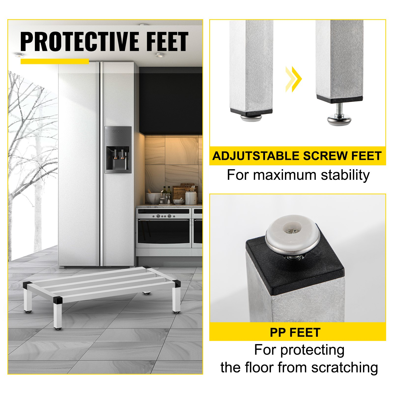 VEVOR Aluminum Dunnage Rack, 48'' x 20'' Commercial Floor Food Shelf, 8'' Off The Floor, 1500lbs Capacity Aluminum Storage Rack, Commercial Food Service Storage in Restaurant, Kitchens, Shops