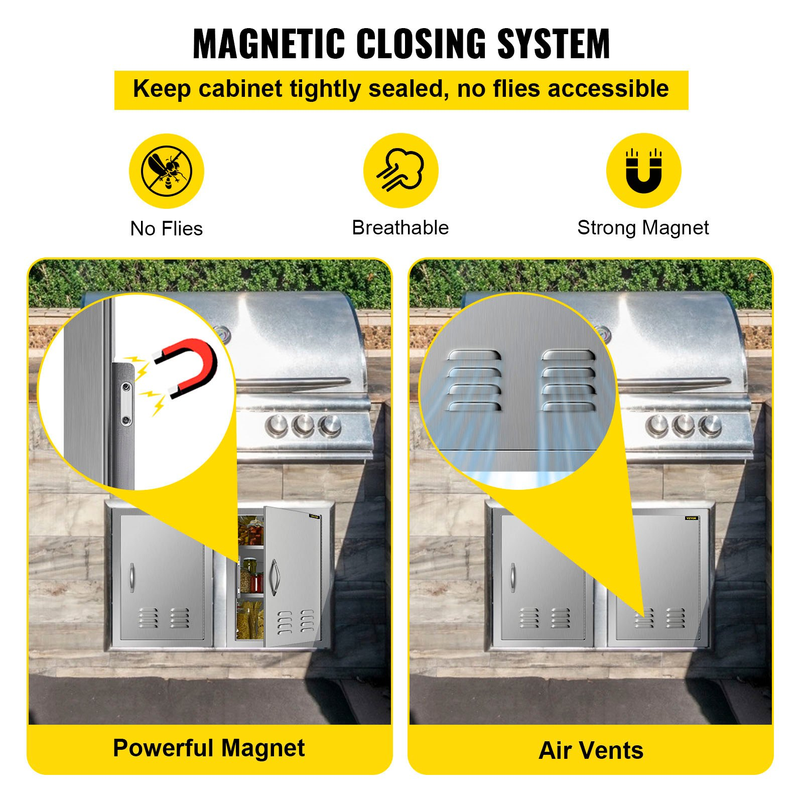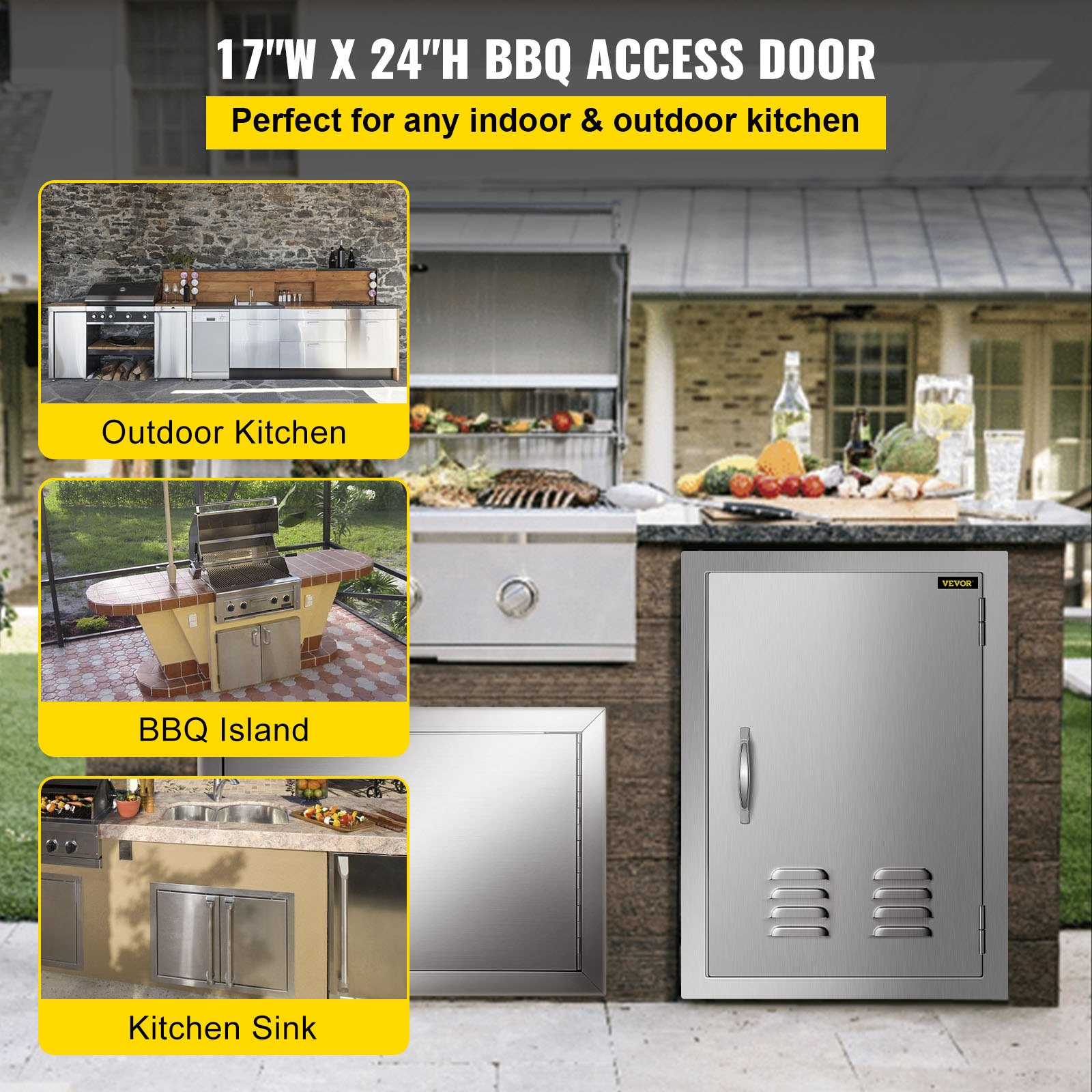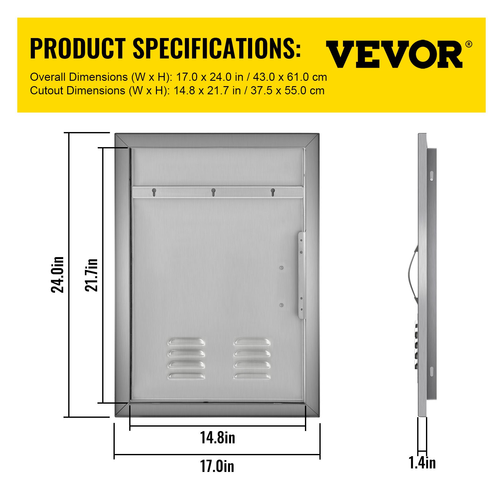 VEVOR BBQ Access Door 17 x 24 Inch Vertical Island Door with Vents Stainless Steel Single Access Door Flush Mount Outdoor Kitchen