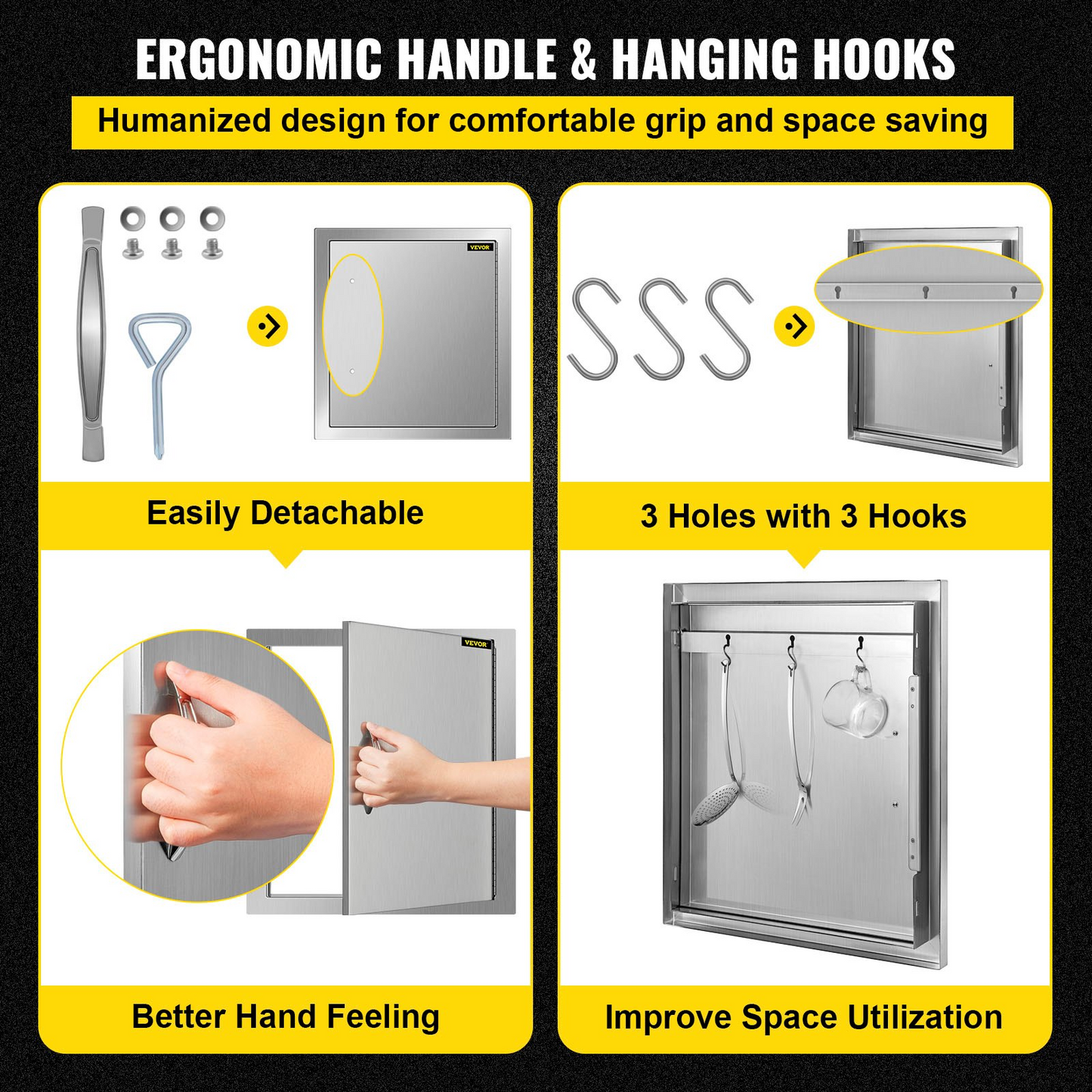 VEVOR BBQ Access Door 18W x 20H Inch, Vertical Single BBQ Door Stainless Steel, Outdoor Kitchen Doors for BBQ Island, Grill Station, Outside Cabinet