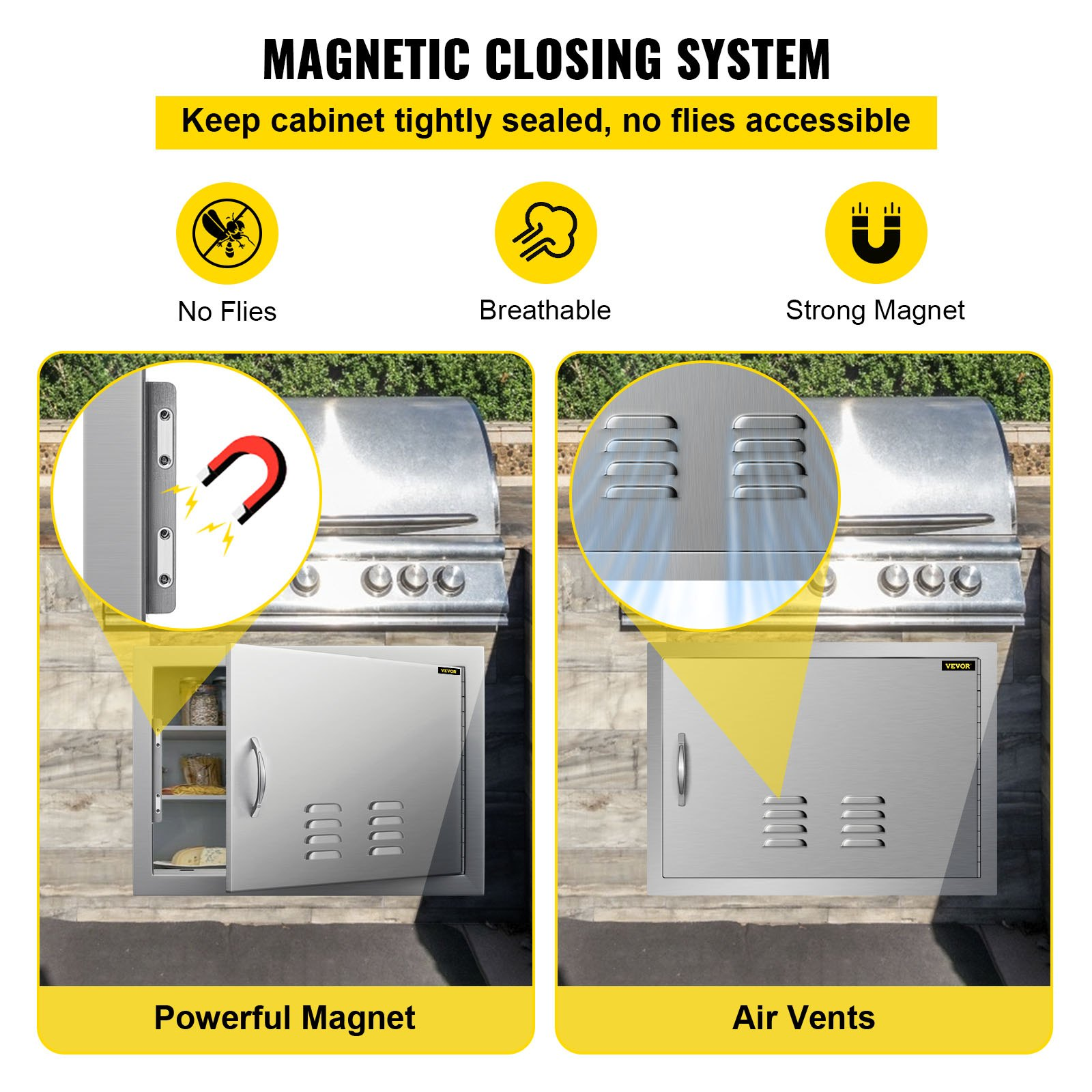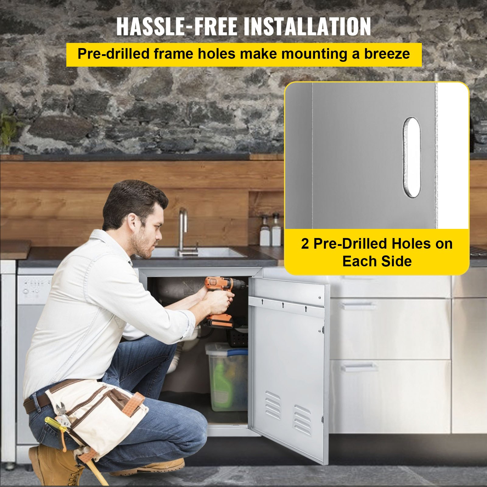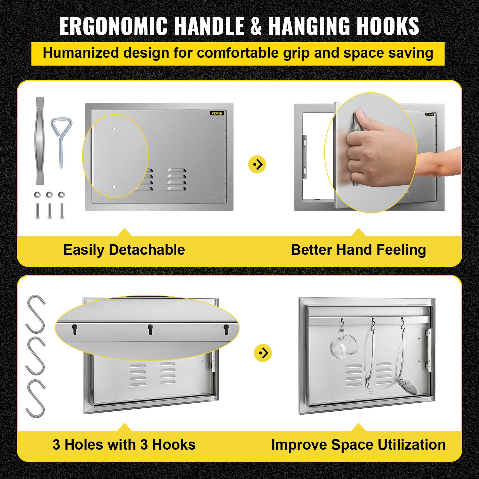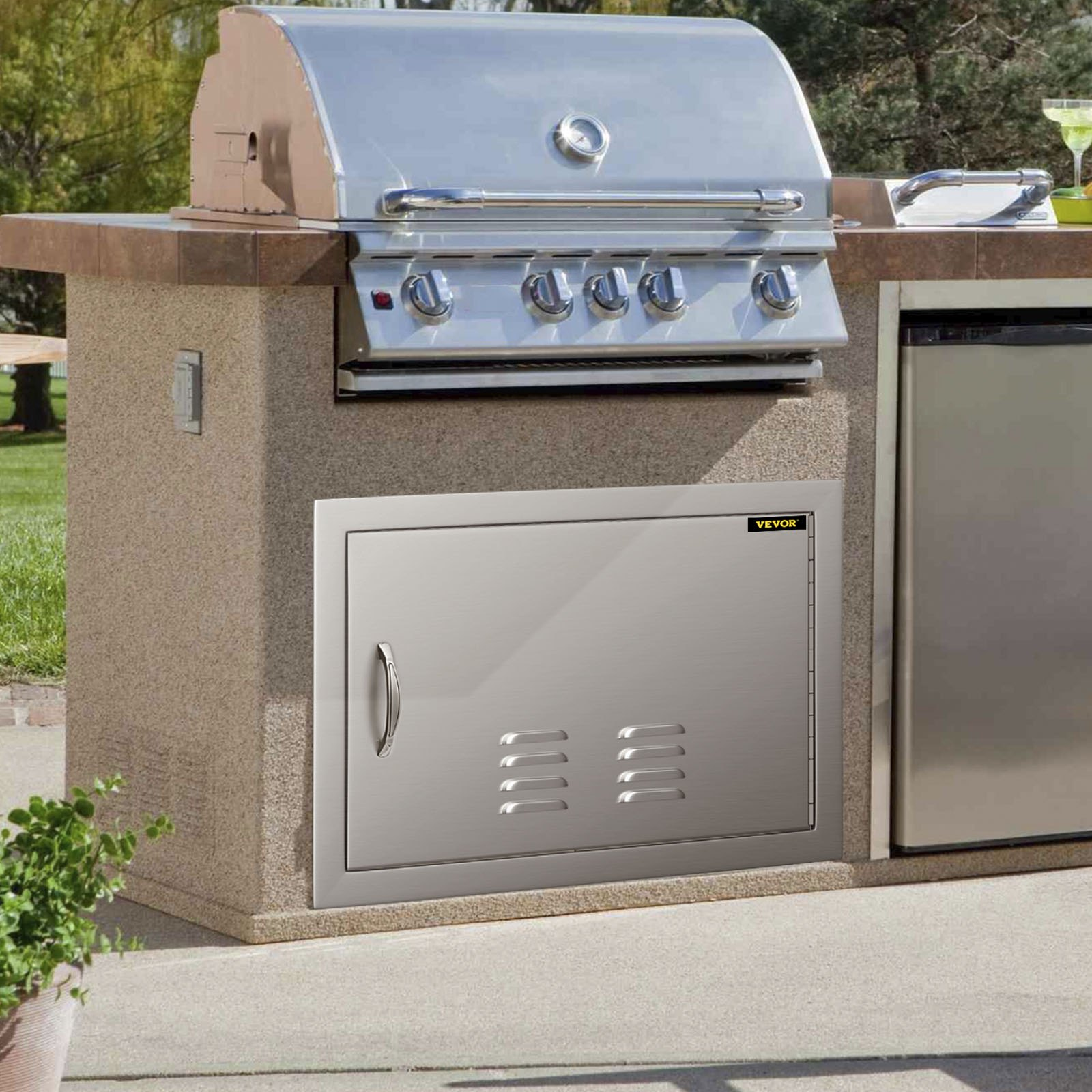 VEVOR BBQ Access Door 24 x 17 Inch Horizontal Island Door with Vents Stainless Steel Single Access Door Flush Mount Outdoor Kitchen