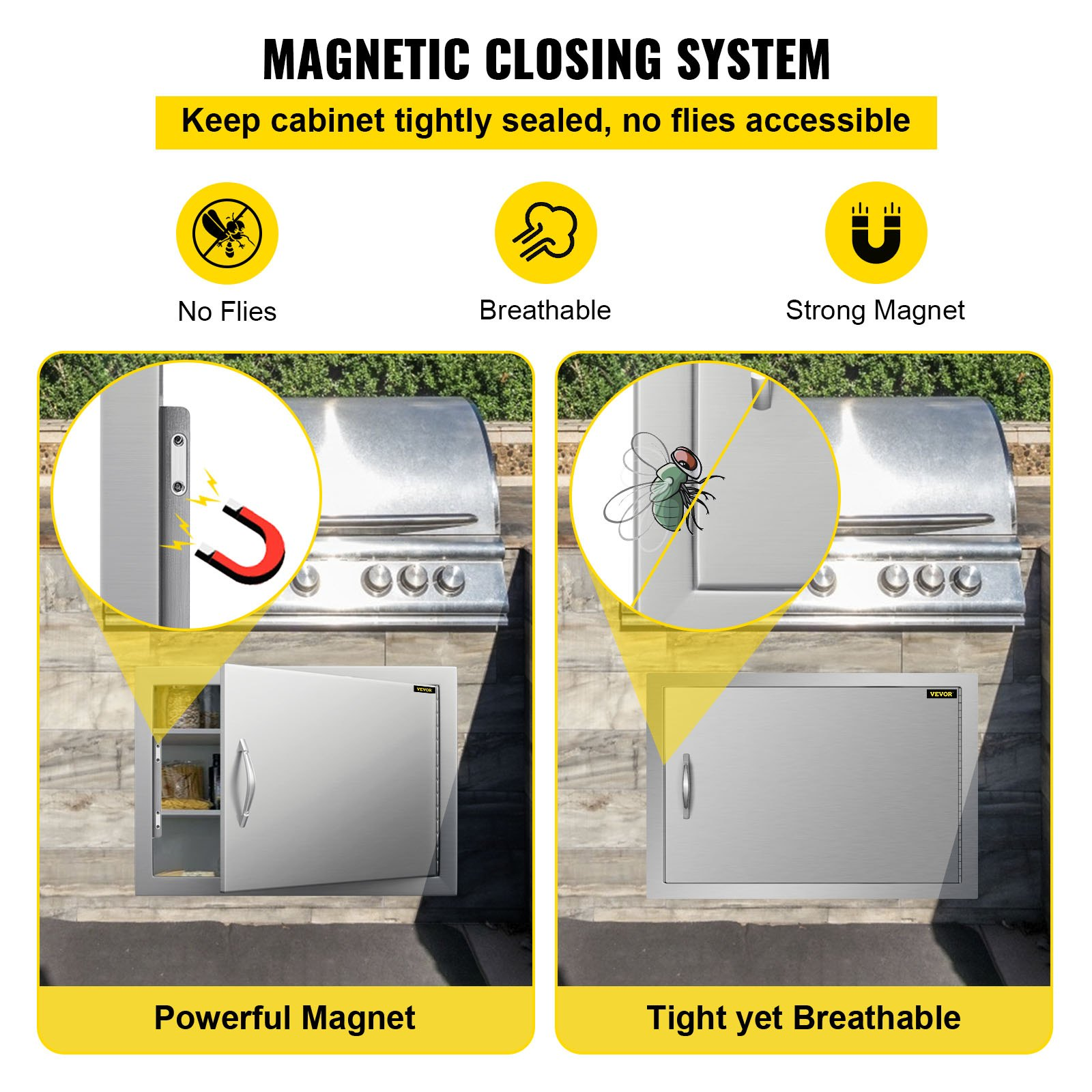 VEVOR BBQ Access Door 24W x 17H Inch, Horizontal Single BBQ Door Stainless Steel, Outdoor Kitchen Doors for BBQ Island, Grill Station, Outside Cabinet