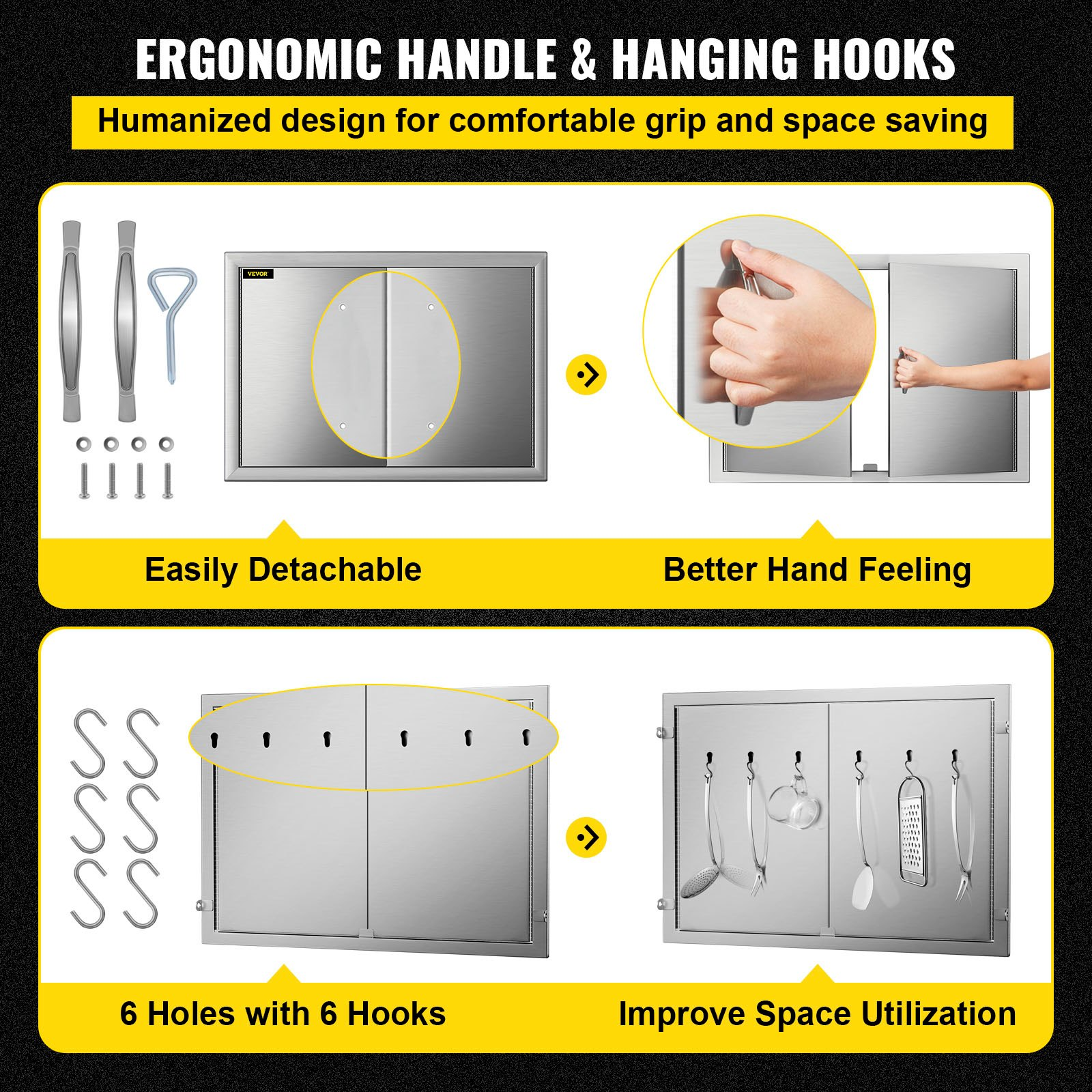 VEVOR BBQ Access Door 28W X 19H Inch, Double BBQ Door Stainless Steel, Outdoor Kitchen Doors for BBQ Island, Grill Station, Outside Cabinet