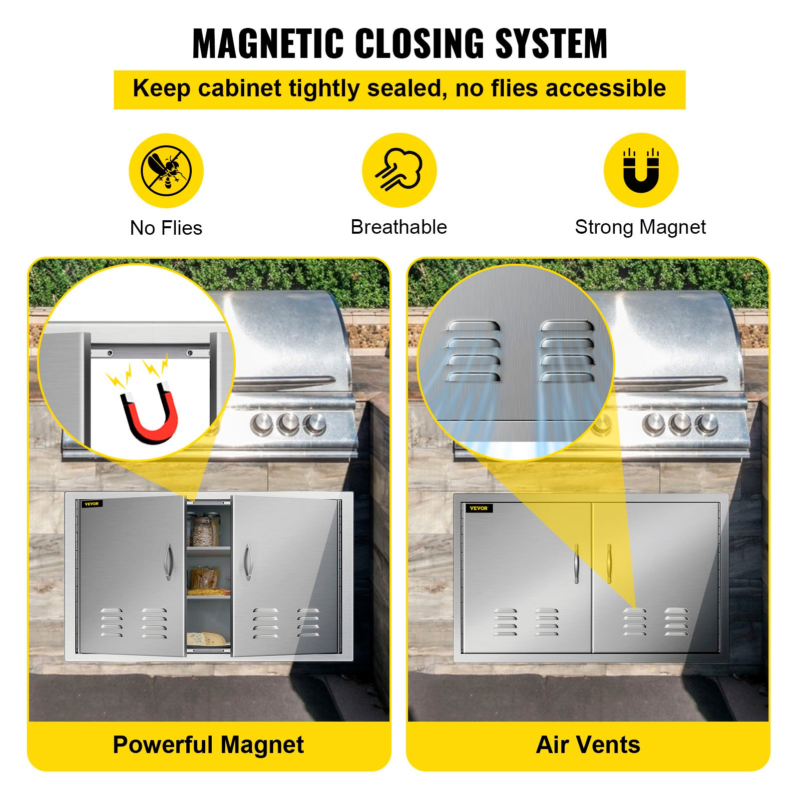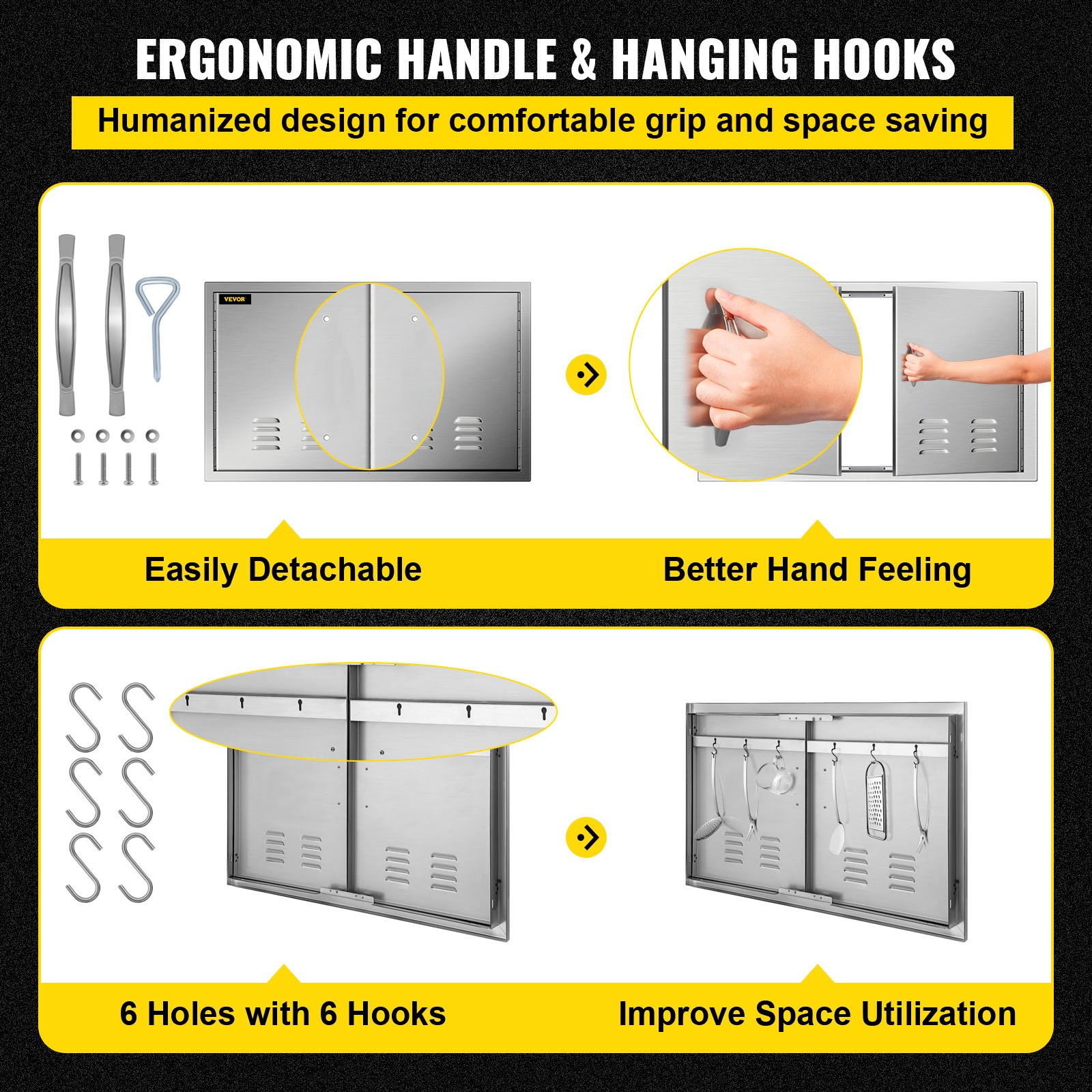 VEVOR BBQ Island Door 36 x 21 Beveled Frame Vented Double Access Door Stainless Stainless Steel for Outdoor Kitchen
