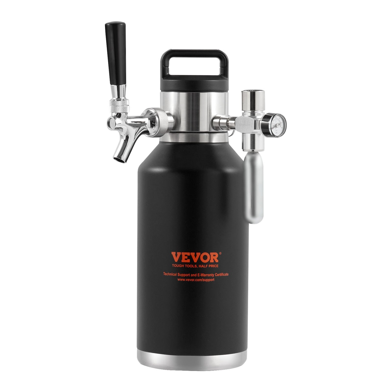 VEVOR Beer Growler Tap System, 64Oz 1.89L Mini Keg, 304 Stainless Steel Pressurized Beer Growler, Keg Growler with Pressure Display, CO2 Regulator Faucet, Leak-Proof Ring For Draft Homebrew Craft Beer
