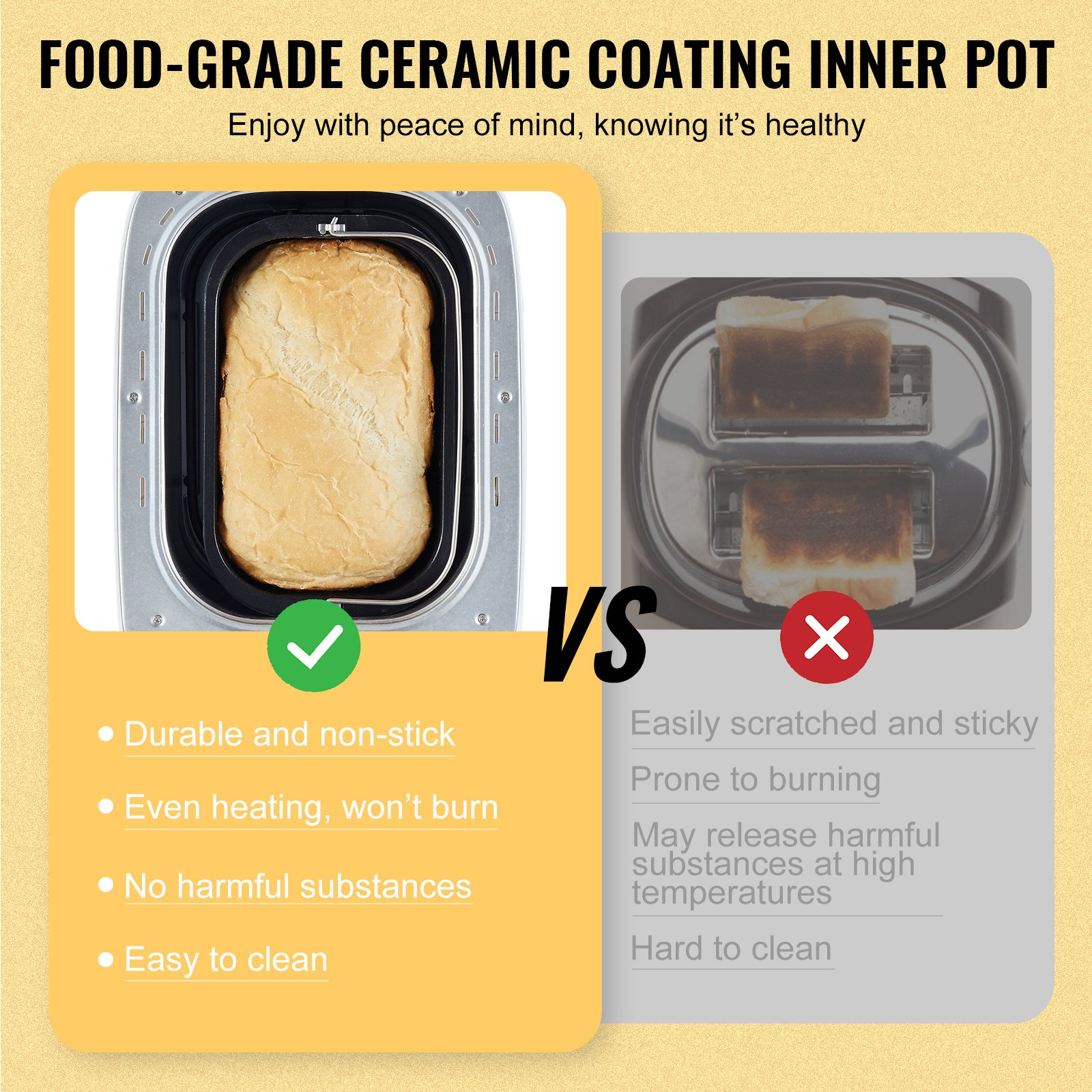 VEVOR Bread Maker, 15-in-1 3LB Dough Machine, Nonstick Ceramic Pan Automatic Breadmaker with Gluten Free Setting, Whole Wheat Bread Making, Digital, Programmable, 3 Loaf Sizes, 3 Crust Colors, White